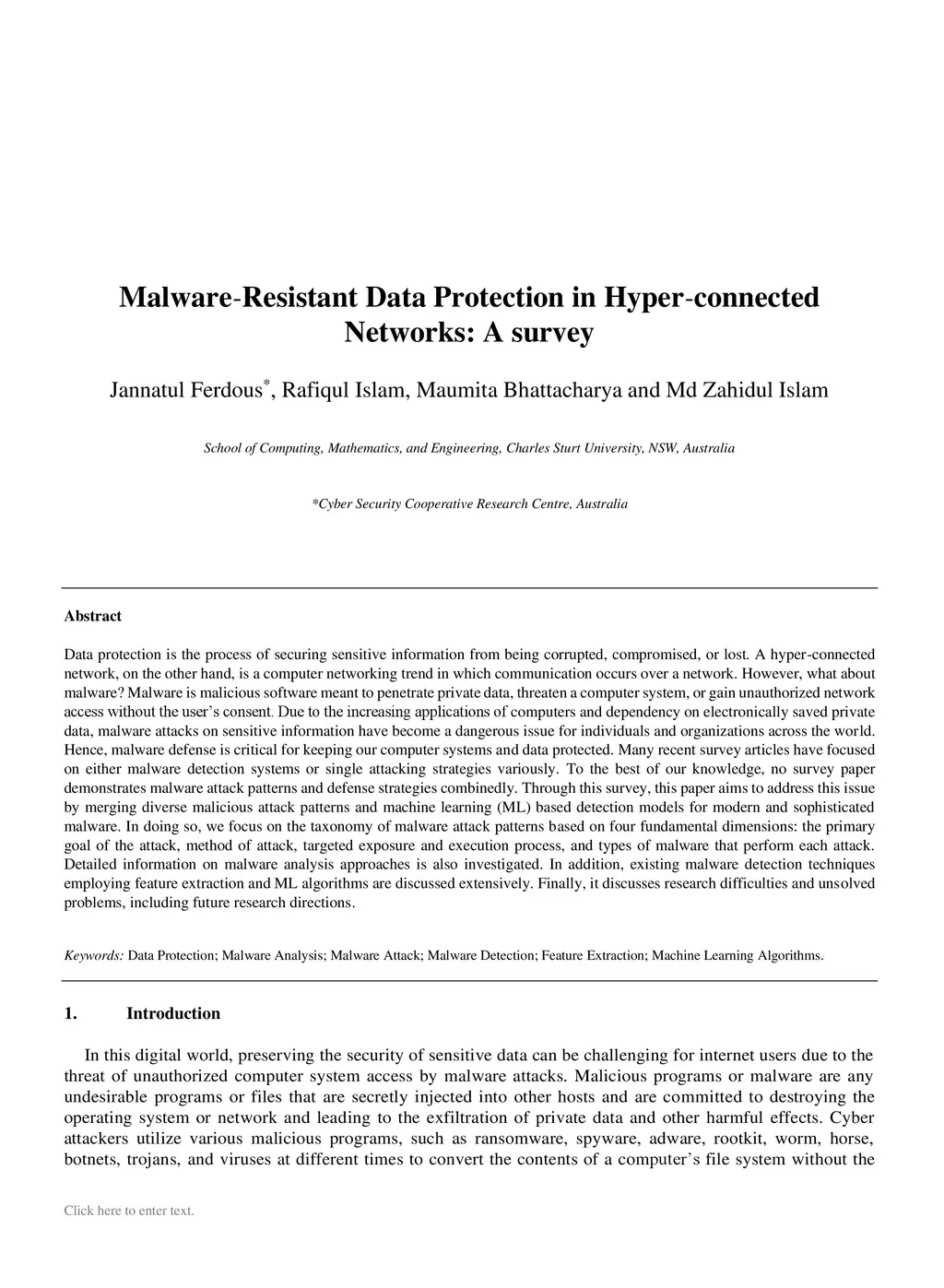 Malware Resistant Data Protection in Hyper-connected Networks: A survey