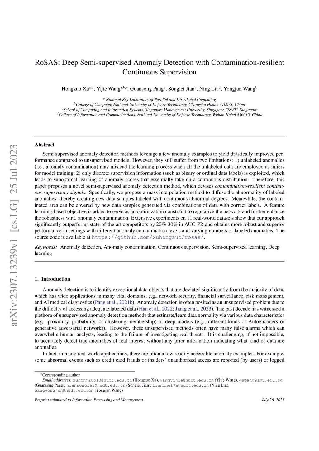 RoSAS: Deep Semi-Supervised Anomaly Detection with