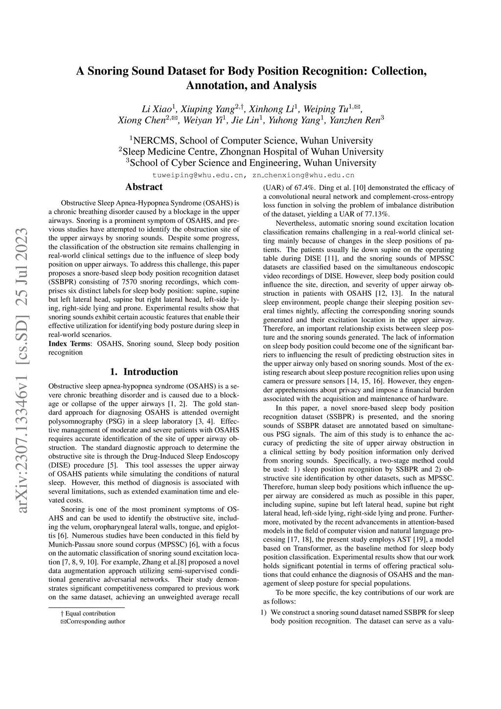 A Snoring Sound Dataset for Body Position Recognition: Collection,