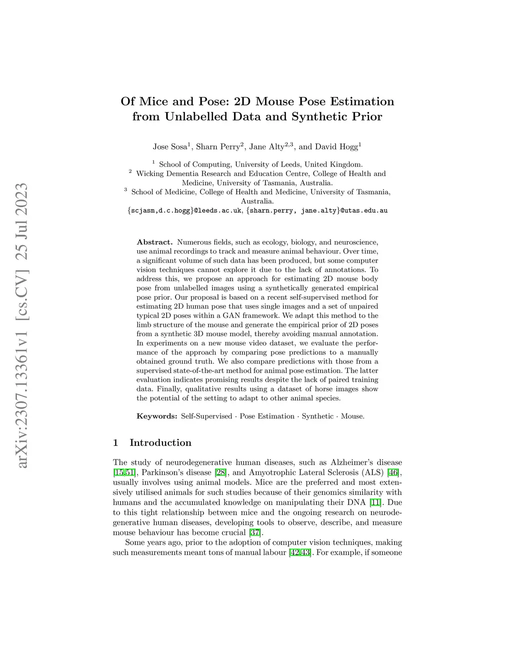 Of Mice and Pose: 2D Mouse Pose Estimation from Unlabelled Data and