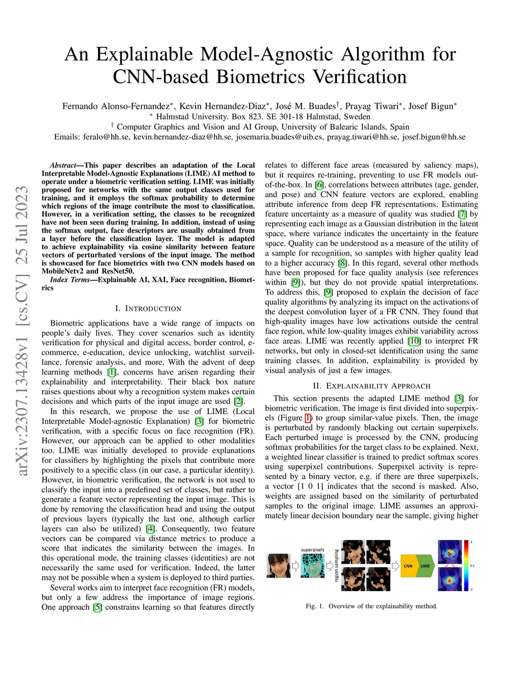 An Explainable Model-Agnostic Algorithm for CNN-based Biometrics