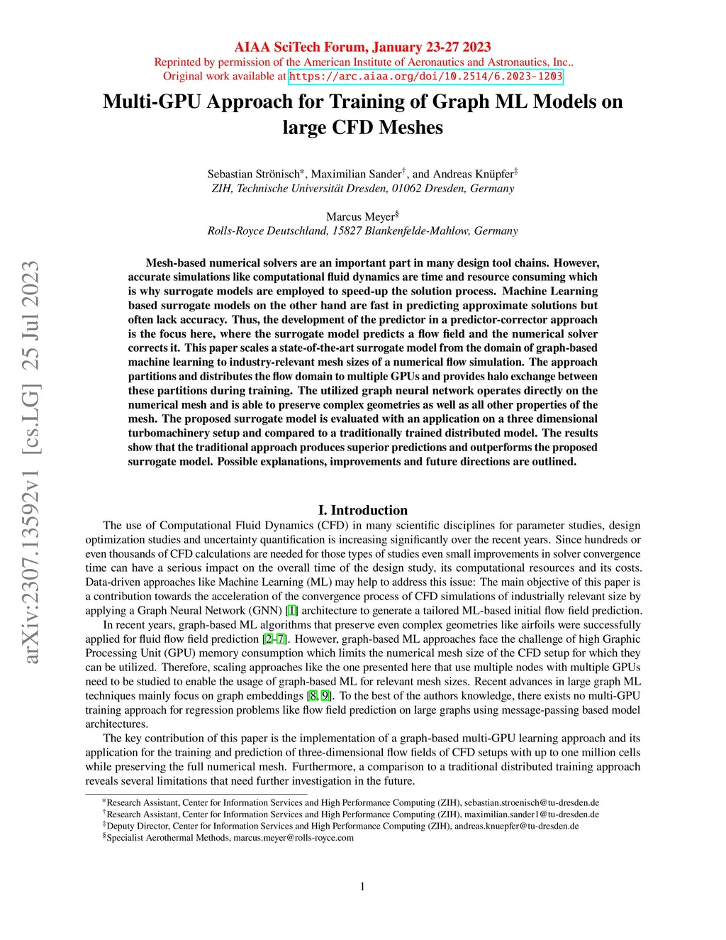 Multi-GPU Approach for Training of Graph ML Models on large CFD Meshes