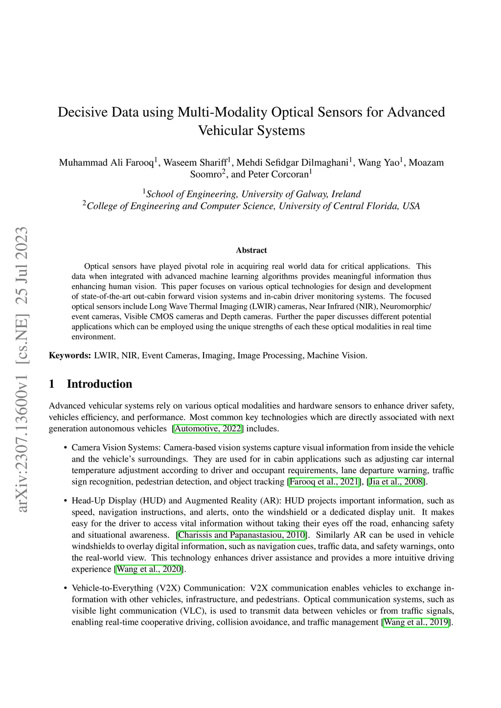 Optical sensors have played a pivotal role in acquiring real world data for critical applications. This data, when integrated with advanced machine learning algorithms provides meaningful information thus enhancing human vision. This paper focuses on various optical technologies for design and development of state-of-the-art out-cabin forward vision systems and in-cabin driver monitoring systems. The focused optical sensors include Longwave Thermal Imaging (LWIR) cameras, Near Infrared (NIR), Neuromorphic/ event cameras, Visible CMOS cameras and Depth cameras. Further the paper discusses different potential applications which can be employed using the unique strengths of each these optical modalities in real time environment.