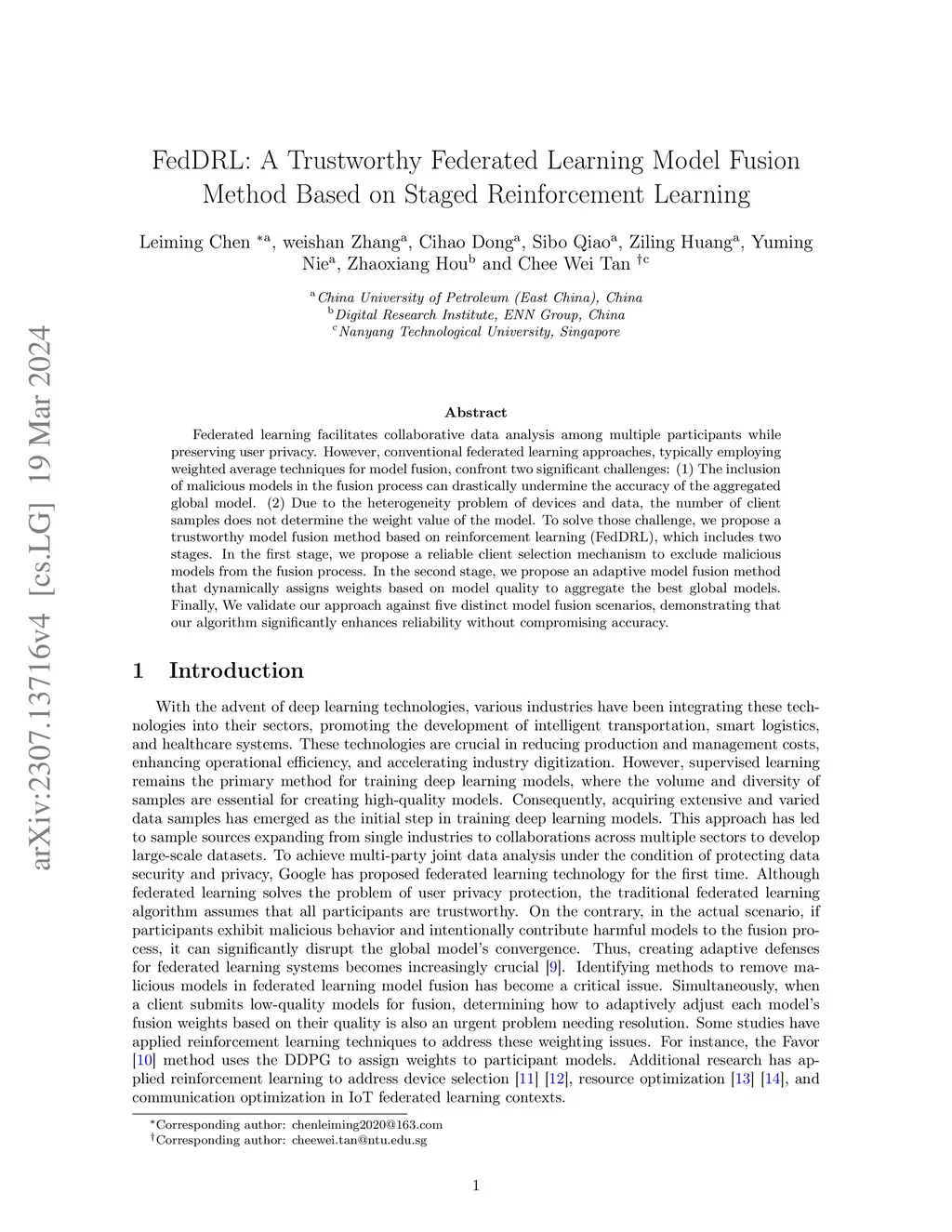 FedDRL: A Trustworthy Federated Learning Model Fusion Method Based on Staged Reinforcement Learning