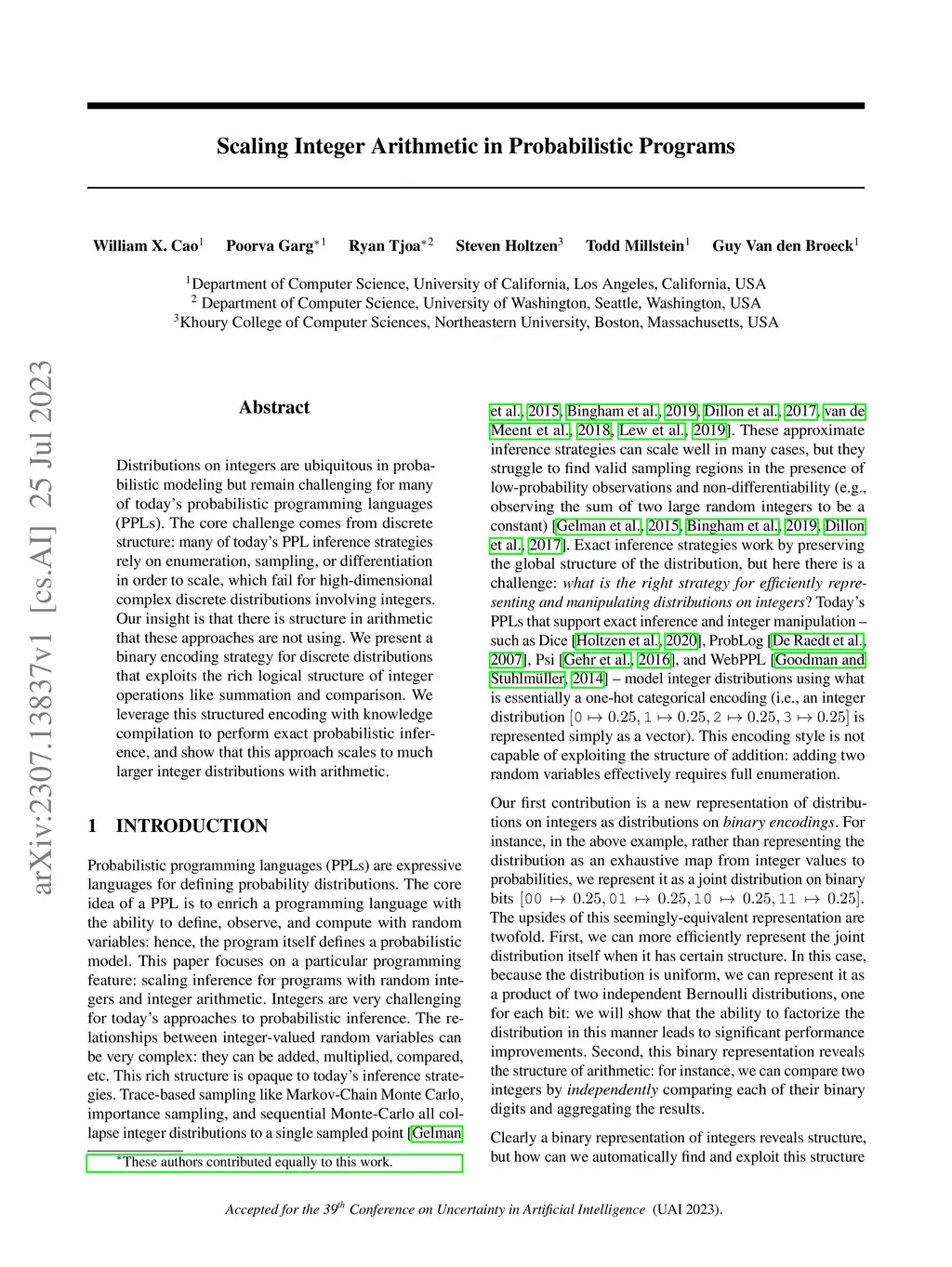 Scaling Integer Arithmetic in Probabilistic Programs