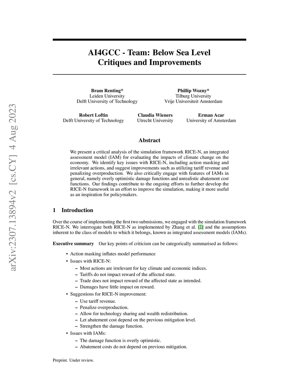 AI4GCC - Team: Below Sea Level: Critiques and Improvements
