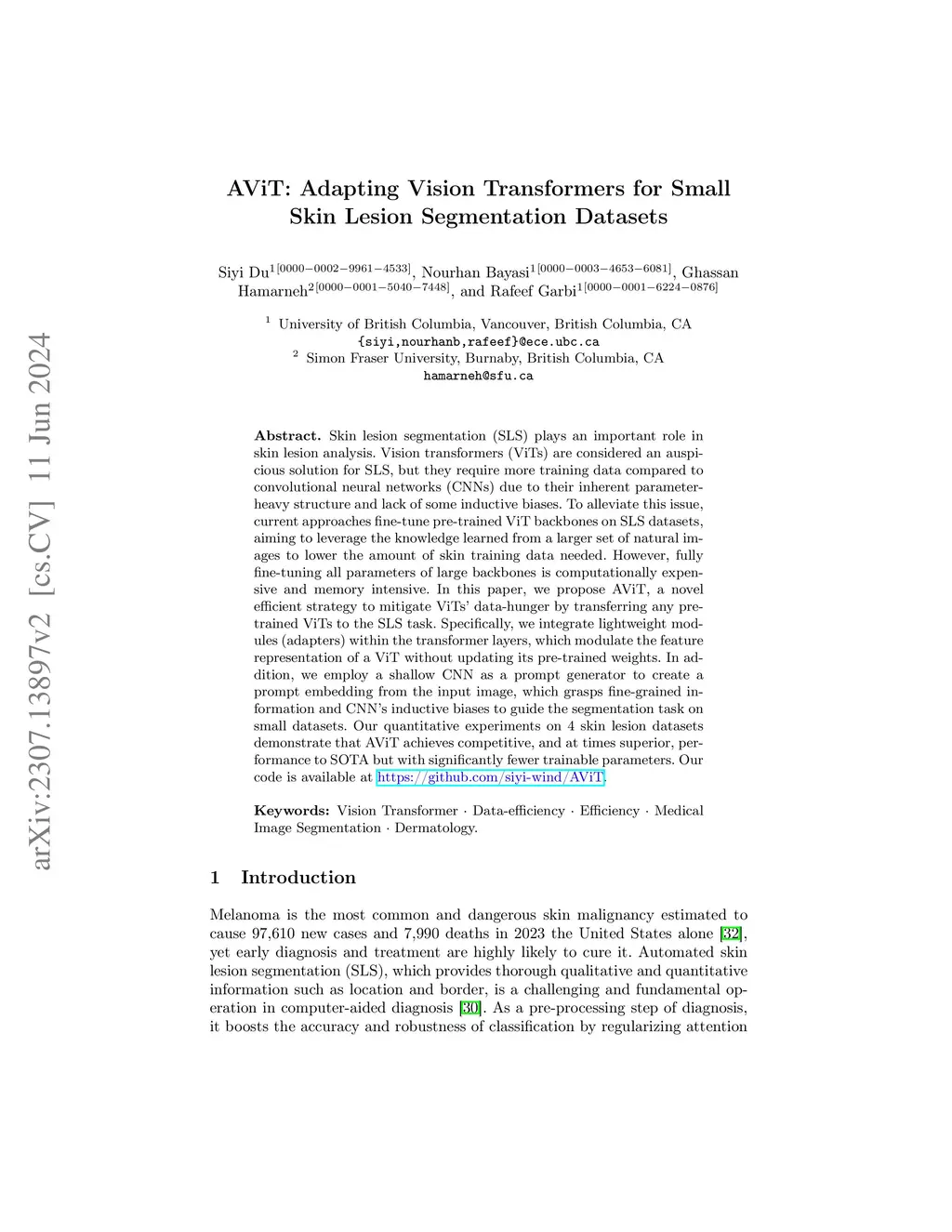 AViT: Adapting Vision Transformers for Small Skin Lesion Segmentation