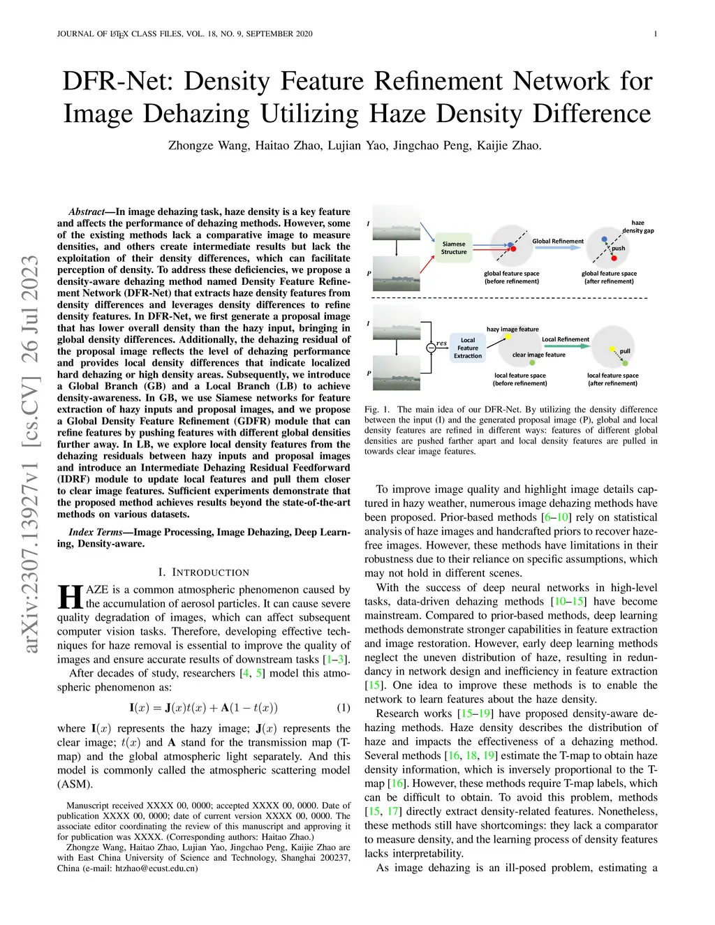 DFR-Net: Density Feature Refinement Network for Image Dehazing Utilizing