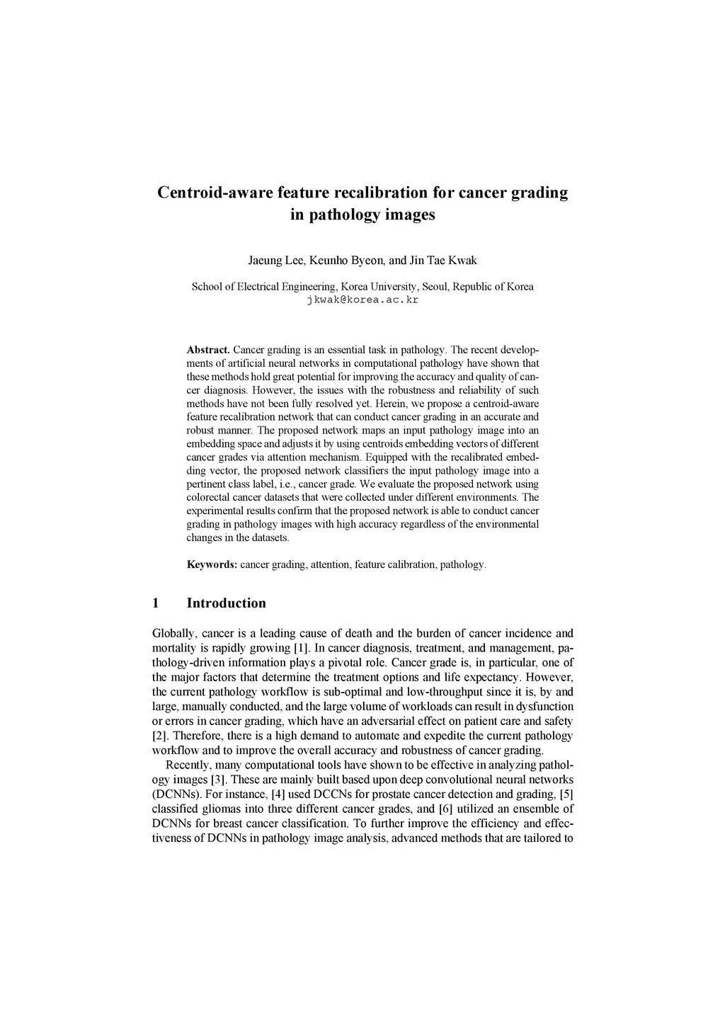 Centroid-aware feature recalibration for cancer grading in pathology