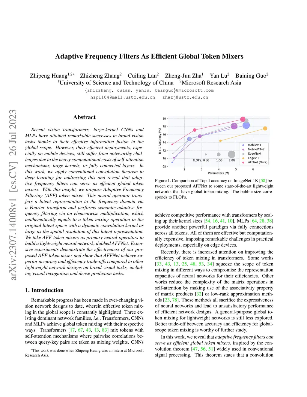 Adaptive Frequency Filters As Efficient Global Token Mixers