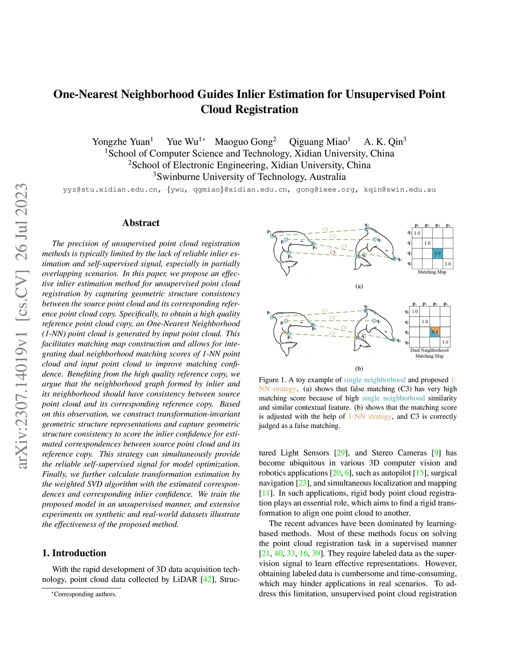 One-Nearest Neighborhood Guides Inlier Estimation for Unsupervised Point