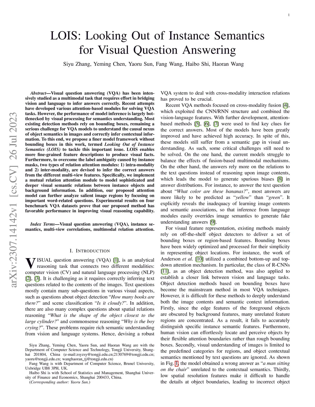 LOIS: Looking Out of Instance Semantics for Visual Question Answering