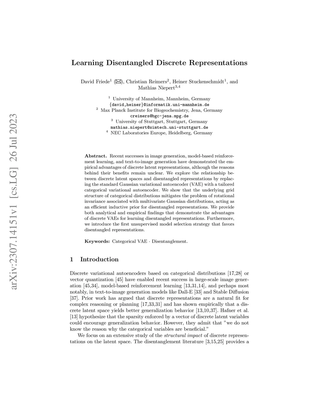 Learning Disentangled Discrete Representations