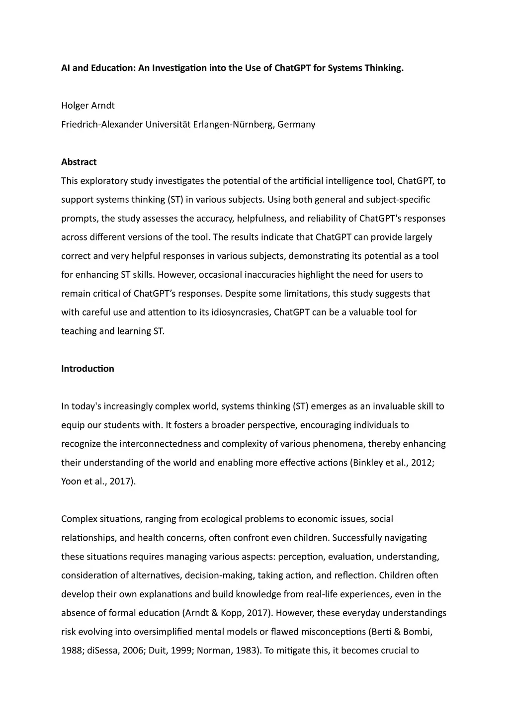 AI and Education: An Investigation into the Use of ChatGPT for Systems
