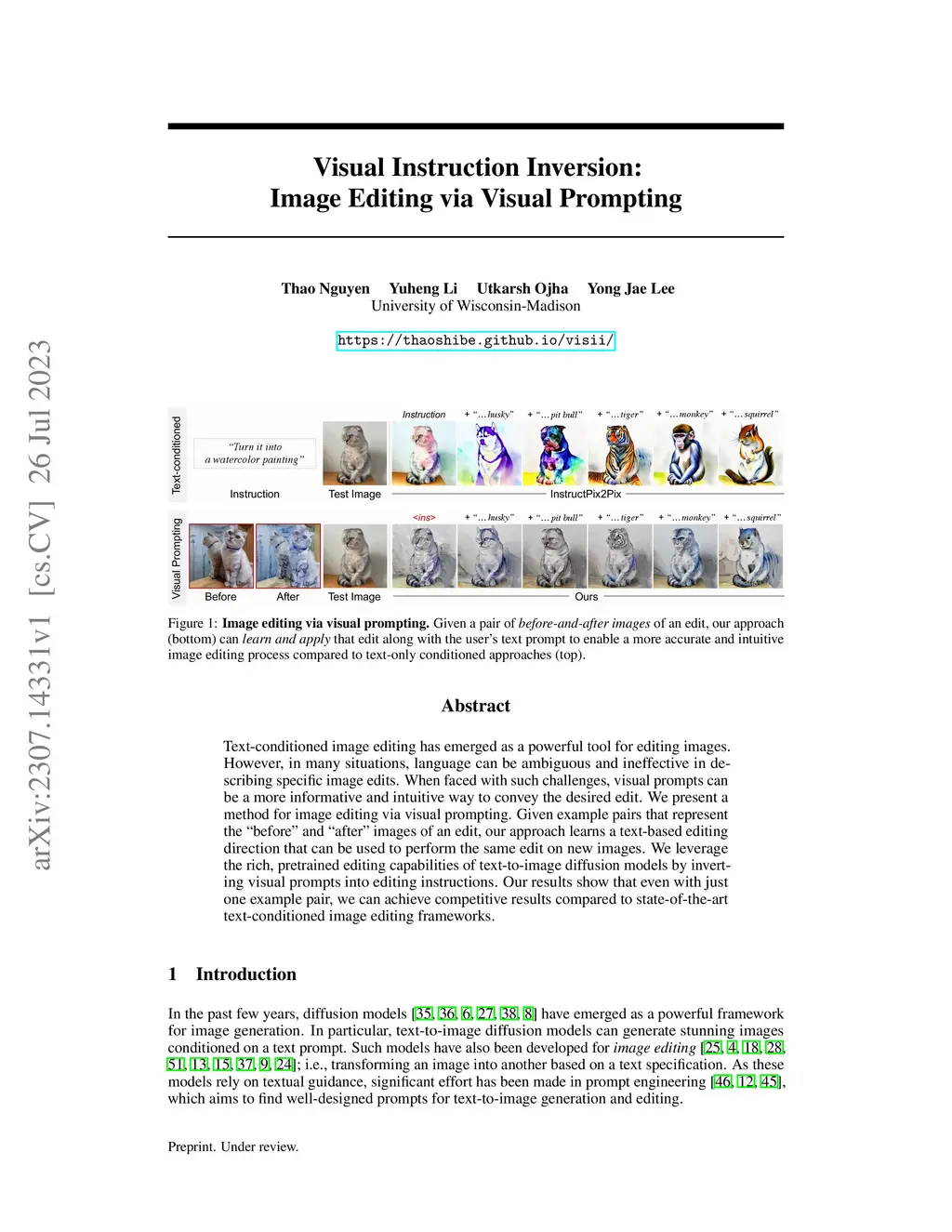 Visual Instruction Inversion: Image Editing via Visual Prompting