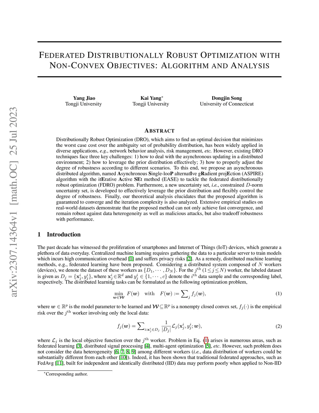 Distributionally Robust Optimization (DRO), which aims to find an optimal decision that minimizes the worst case cost over the ambiguity set of probability distribution, has been widely applied in diverse applications, e.g., network behavior analysis, risk management, etc. However, existing DRO techniques face three key challenges: 1) how to deal with the asynchronous updating in a distributed environment; 2) how to leverage the prior distribution effectively; 3) how to properly adjust the degree of robustness according to different scenarios. To this end, we propose an asynchronous distributed algorithm, named Asynchronous Single-looP alternatIve gRadient projEction (ASPIRE) algorithm with the itErative Active SEt method (EASE) to tackle the federated distributionally robust optimization (FDRO) problem. Furthermore, a new uncertainty set, i.e., constrained D-norm uncertainty set, is developed to effectively leverage the prior distribution and flexibly control the degree of robustness. Finally, our theoretical analysis elucidates that the proposed algorithm is guaranteed to converge and the iteration complexity is also analyzed. Extensive empirical studies on real-world datasets demonstrate that the proposed method can not only achieve fast convergence, and remain robust against data heterogeneity as well as malicious attacks, but also tradeoff robustness with performance.