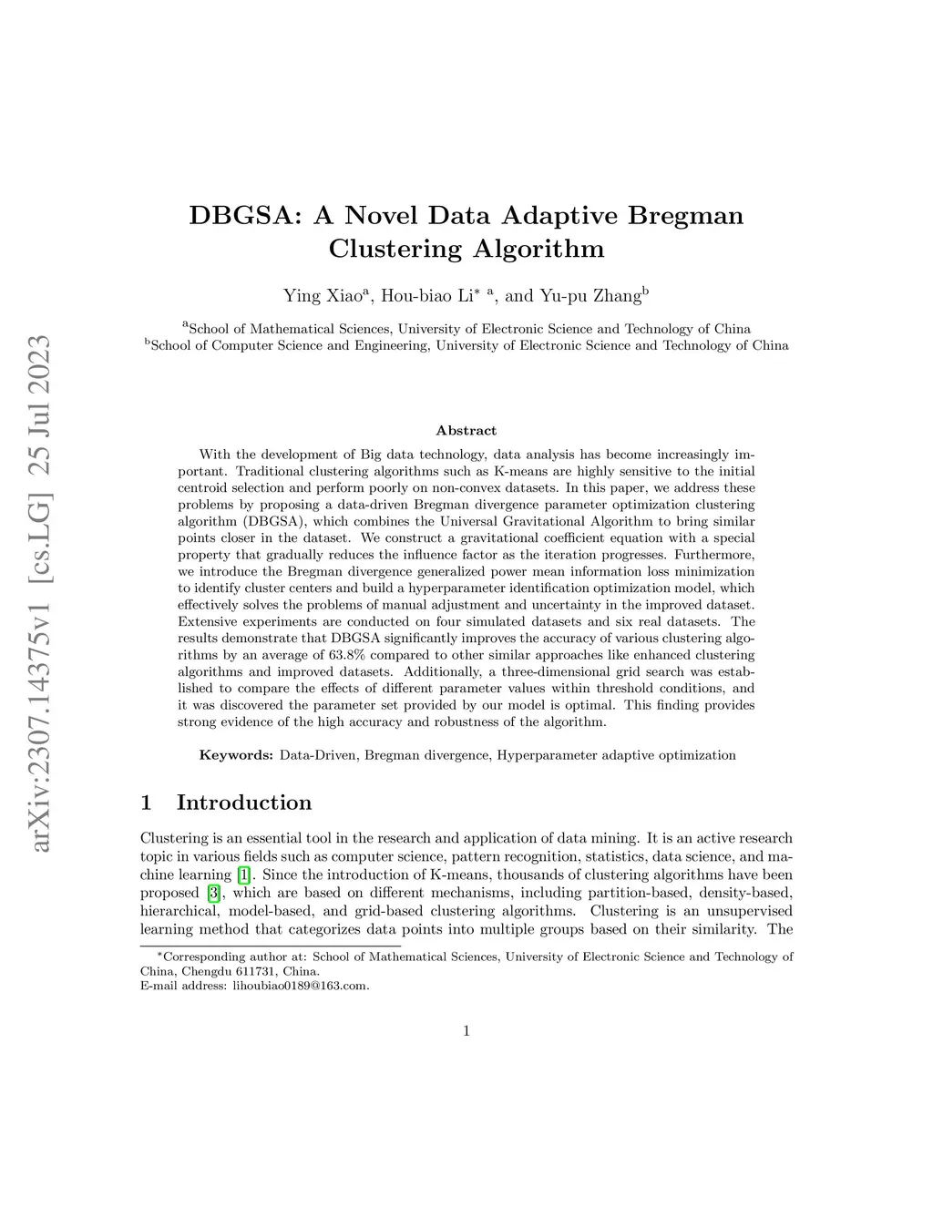 DBGSA: A Novel Data Adaptive Bregman Clustering Algorithm