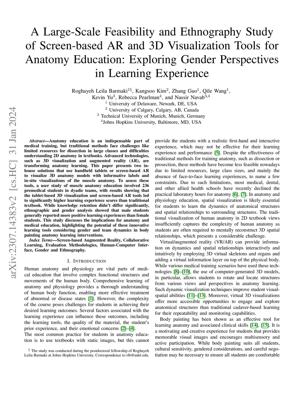 Augmented Reality Tools for Human Anatomy Education: Exploring Gender