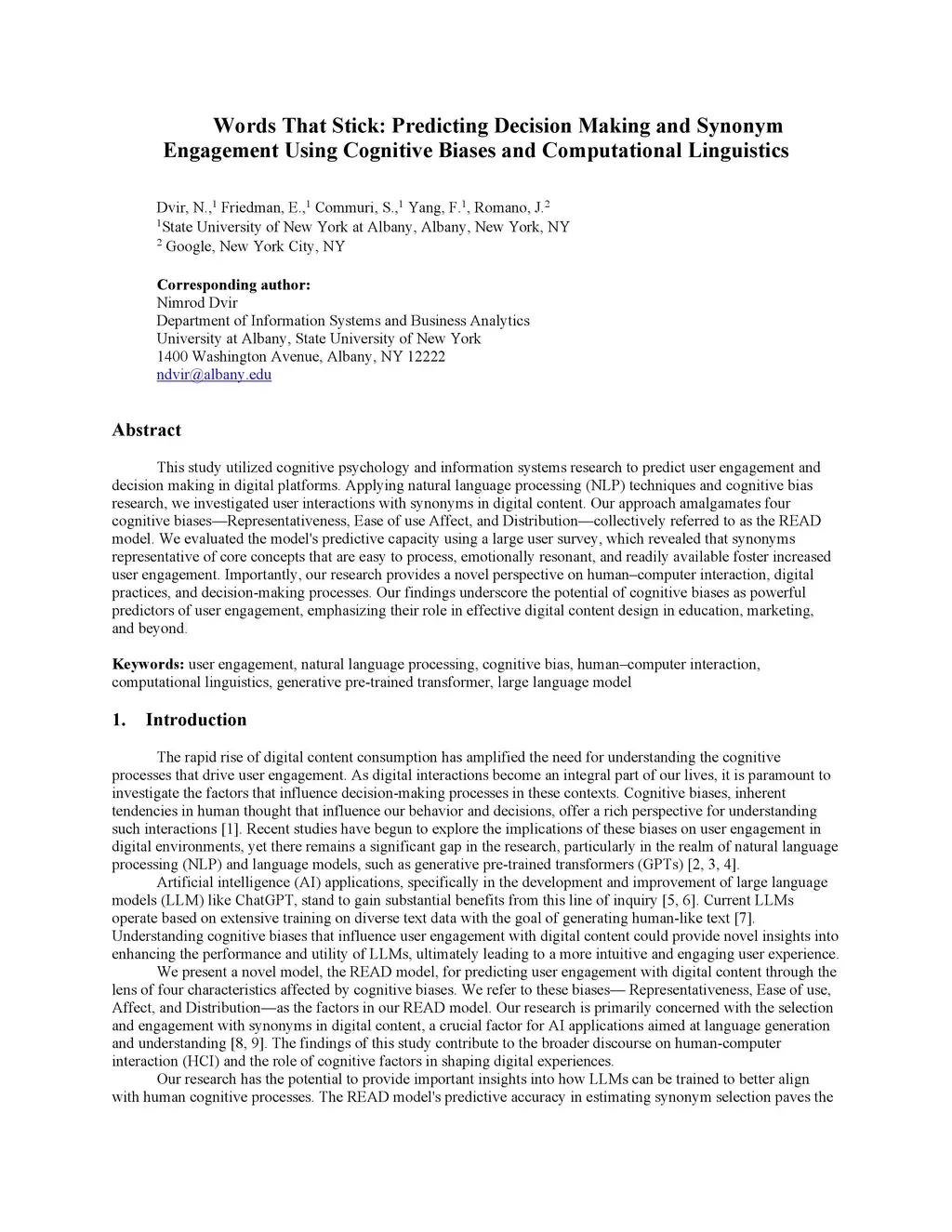 This research draws upon cognitive psychology and information systems studies to anticipate user engagement and decision-making on digital platforms. By employing natural language processing (NLP) techniques and insights from cognitive bias research, we delve into user interactions with synonyms within digital content. Our methodology synthesizes four cognitive biasesRepresentativeness, Ease-of-use, Affect, and Distributioninto the READ model. Through a comprehensive user survey, we assess the model's ability to predict user engagement, discovering that synonyms that accurately represent core ideas, are easy to understand, elicit emotional responses, and are commonly encountered, promote greater user engagement. Crucially, our work offers a fresh lens on human-computer interaction, digital behaviors, and decision-making processes. Our results highlight the promise of cognitive biases as potent indicators of user engagement, underscoring their significance in designing effective digital content across fields like education and marketing.