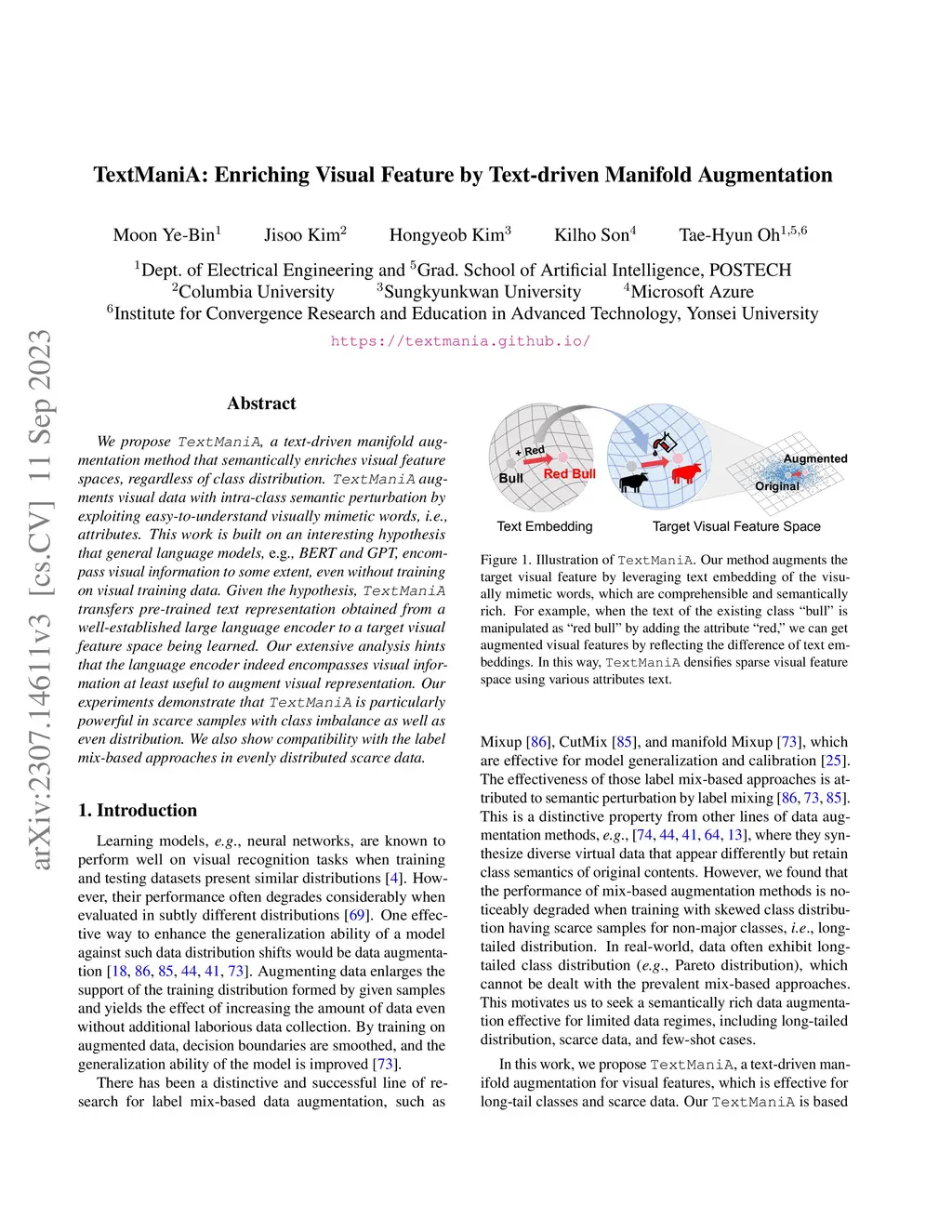 TextManiA: Enriching Visual Feature by Text-driven Manifold Augmentation