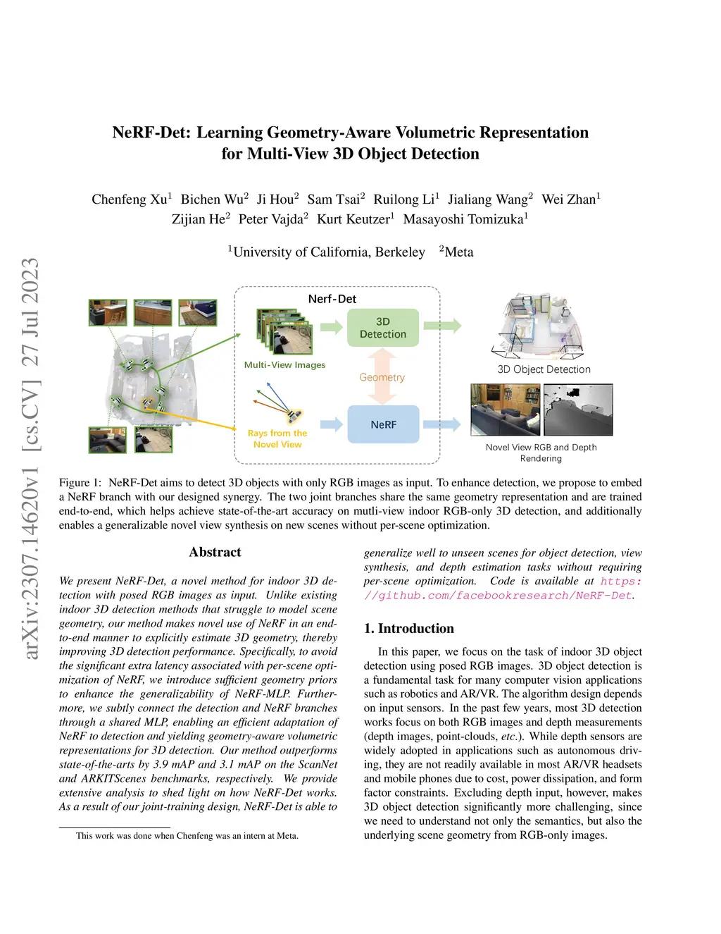 NeRF-Det: Learning Geometry-Aware Volumetric Representation for