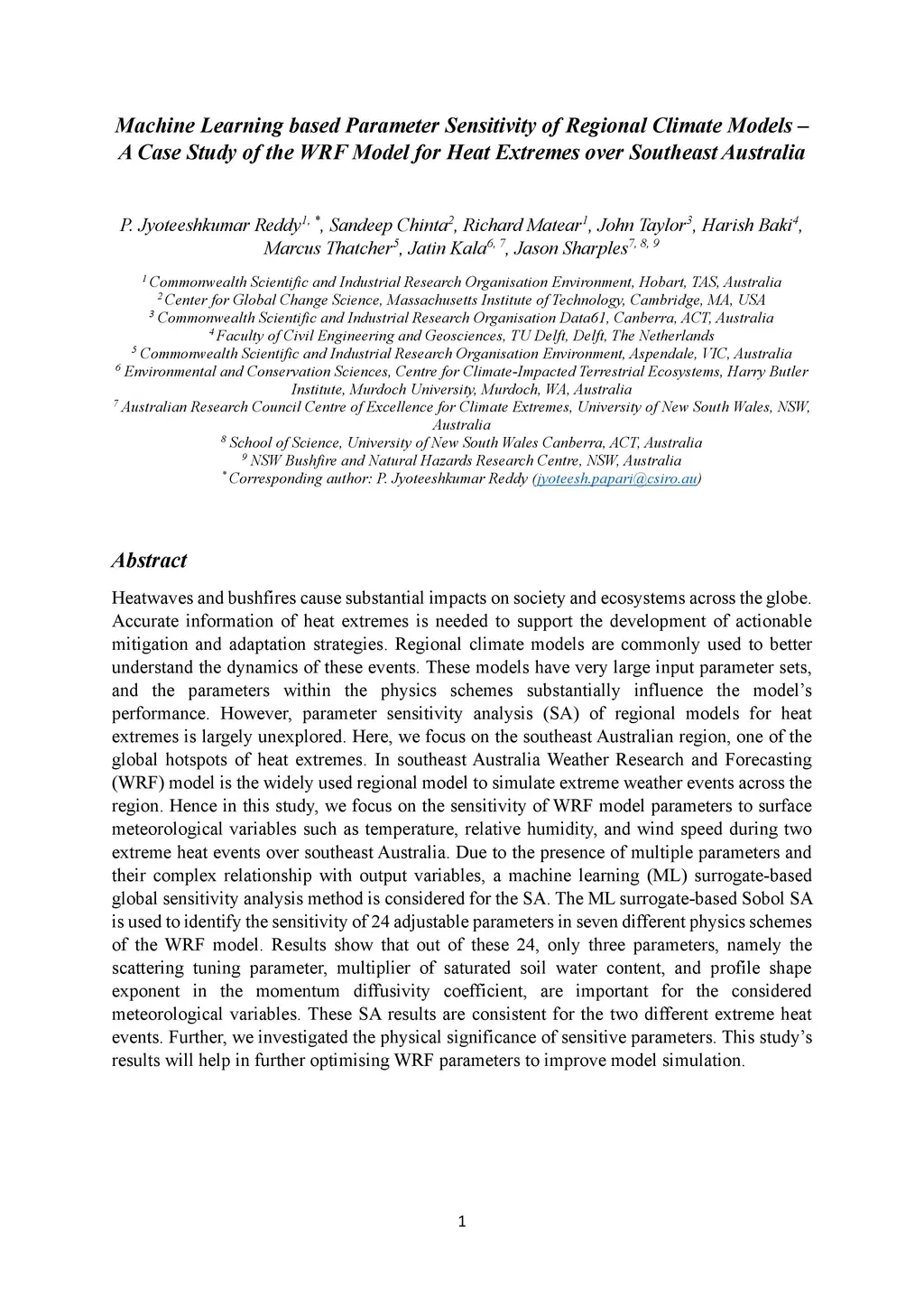 -- A Case Study of the WRF Model for Heat Extremes over Southeast Australia