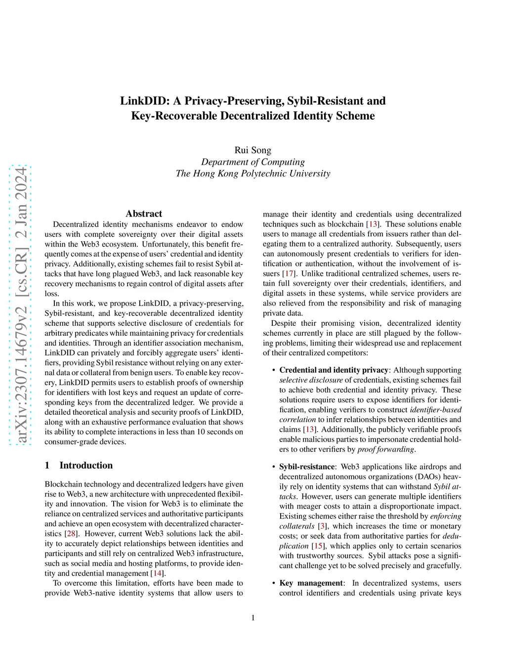 LinkDID: A Privacy-Preserving, Sybil-Resistant and Key-Recoverable