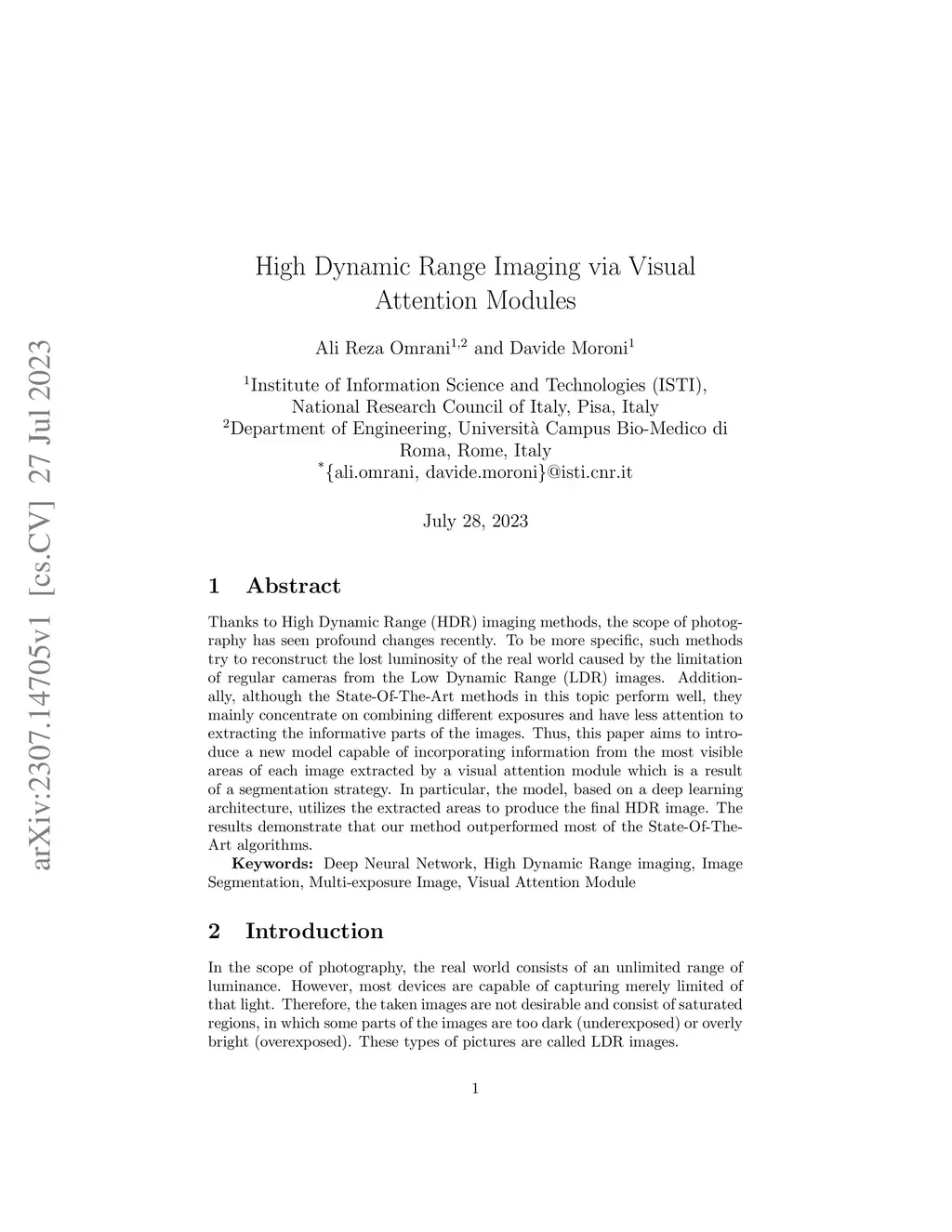 Thanks to High Dynamic Range (HDR) imaging methods, the scope of photography has seen profound changes recently. To be more specific, such methods try to reconstruct the lost luminosity of the real world caused by the limitation of regular cameras from the Low Dynamic Range (LDR) images. Additionally, although the State-Of-The-Art methods in this topic perform well, they mainly concentrate on combining different exposures and have less attention to extracting the informative parts of the images. Thus, this paper aims to introduce a new model capable of incorporating information from the most visible areas of each image extracted by a visual attention module (VAM), which is a result of a segmentation strategy. In particular, the model, based on a deep learning architecture, utilizes the extracted areas to produce the final HDR image. The results demonstrate that our method outperformed most of the State-Of-The-Art algorithms.