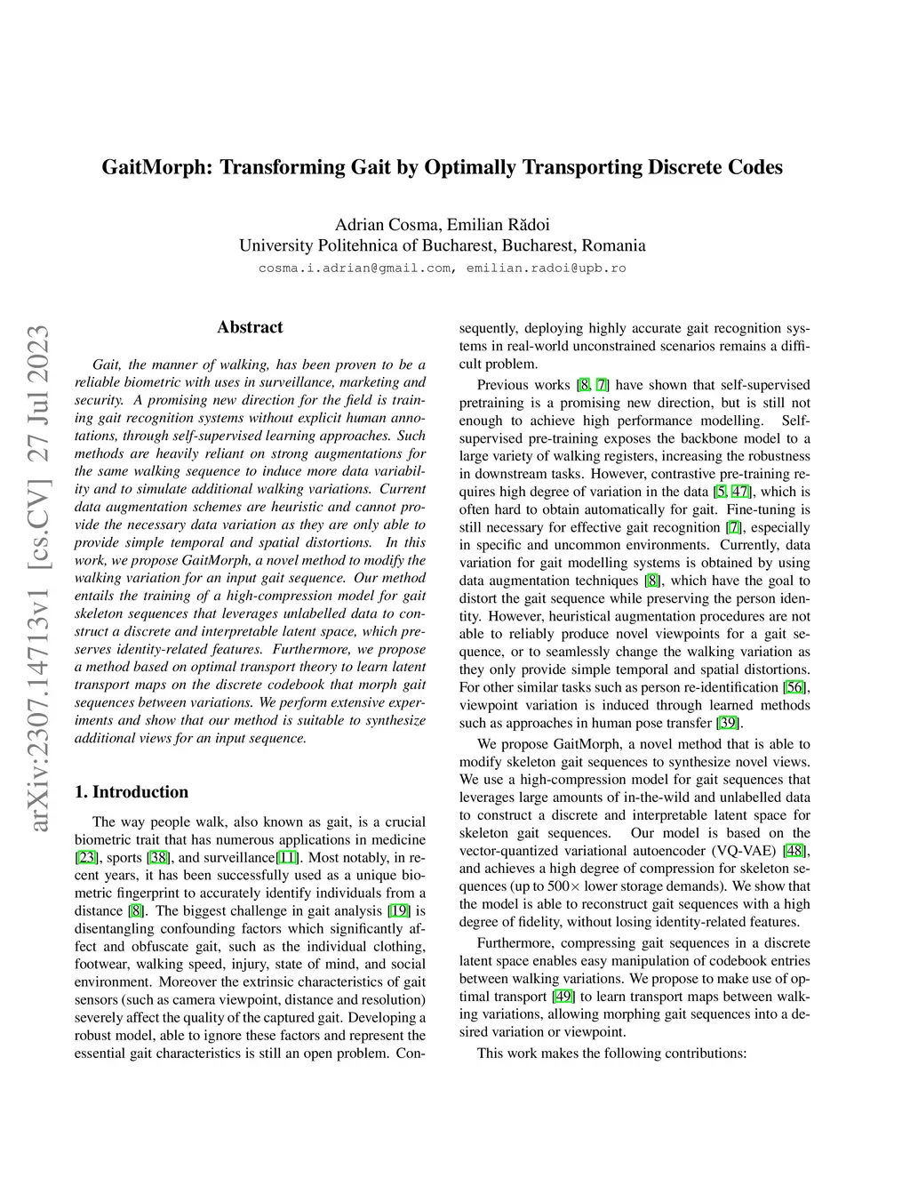 GaitMorph: Transforming Gait by Optimally Transporting Discrete Codes