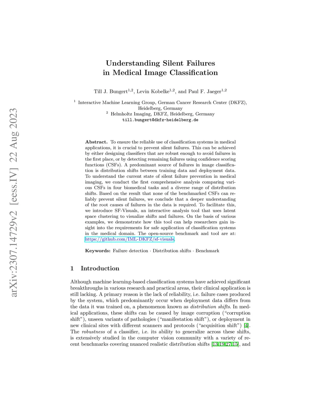 To ensure the reliable use of classification systems in medical applications, it is crucial to prevent silent failures. This can be achieved by either designing classifiers that are robust enough to avoid failures in the first place, or by detecting remaining failures using confidence scoring functions (CSFs). A predominant source of failures in image classification is distribution shifts between training data and deployment data. To understand the current state of silent failure prevention in medical imaging, we conduct the first comprehensive analysis comparing various CSFs in four biomedical tasks and a diverse range of distribution shifts. Based on the result that none of the benchmarked CSFs can reliably prevent silent failures, we conclude that a deeper understanding of the root causes of failures in the data is required. To facilitate this, we introduce SF-Visuals, an interactive analysis tool that uses latent space clustering to visualize shifts and failures. On the basis of various examples, we demonstrate how this tool can help researchers gain insight into the requirements for safe application of classification systems in the medical domain. The open-source benchmark and tool are at: https://github.com/IML-DKFZ/sf-visuals.