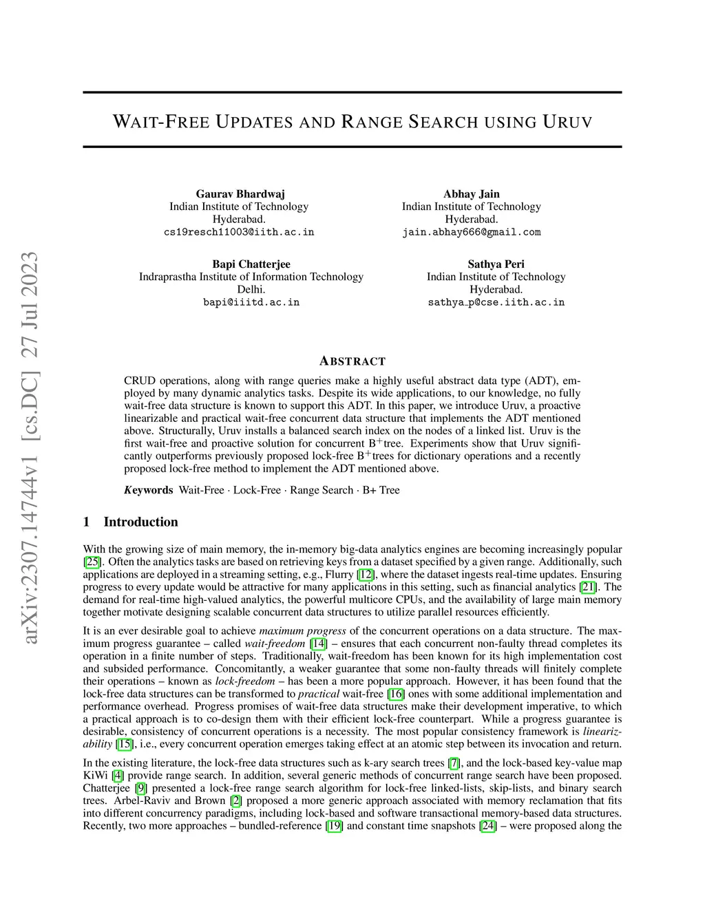 Wait-Free Updates and Range Search using Uruv