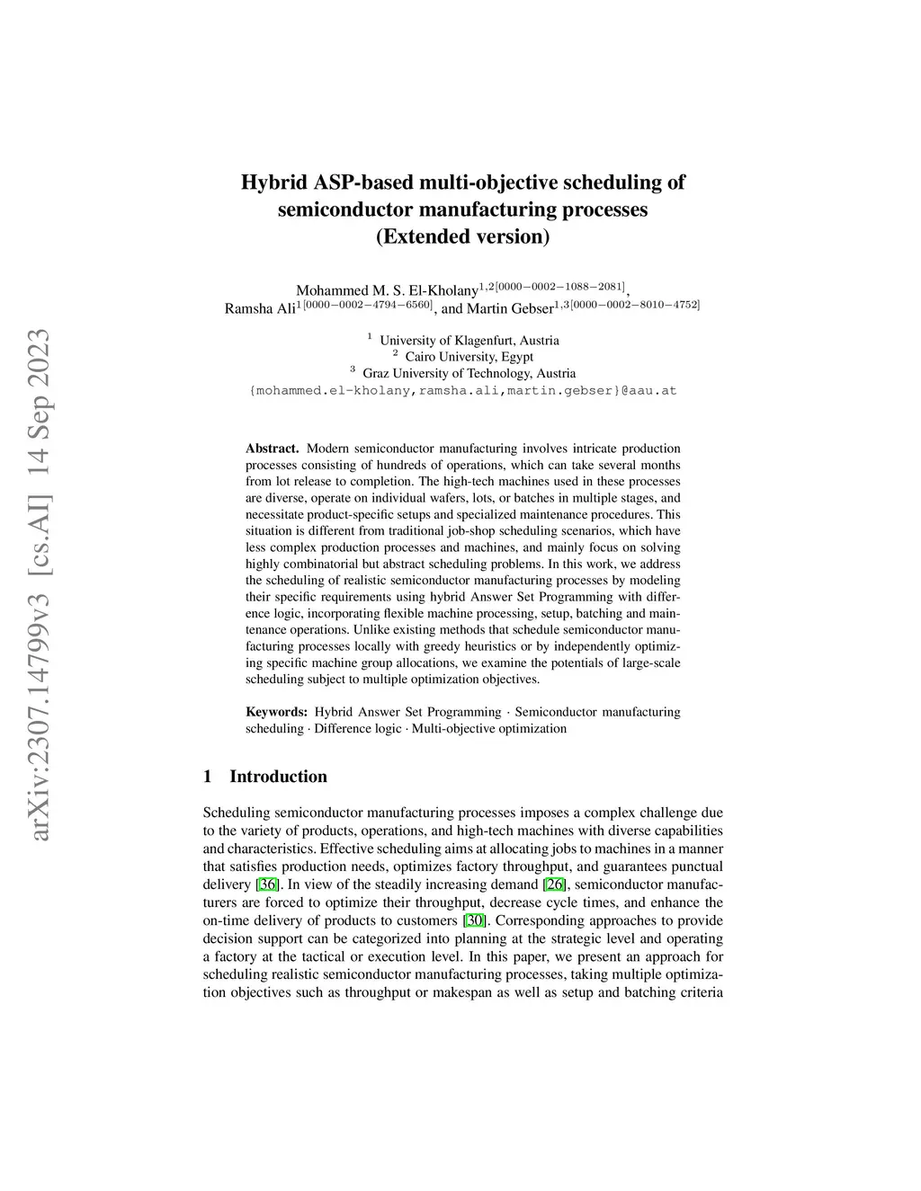 Hybrid ASP-based multi-objective scheduling of semiconductor