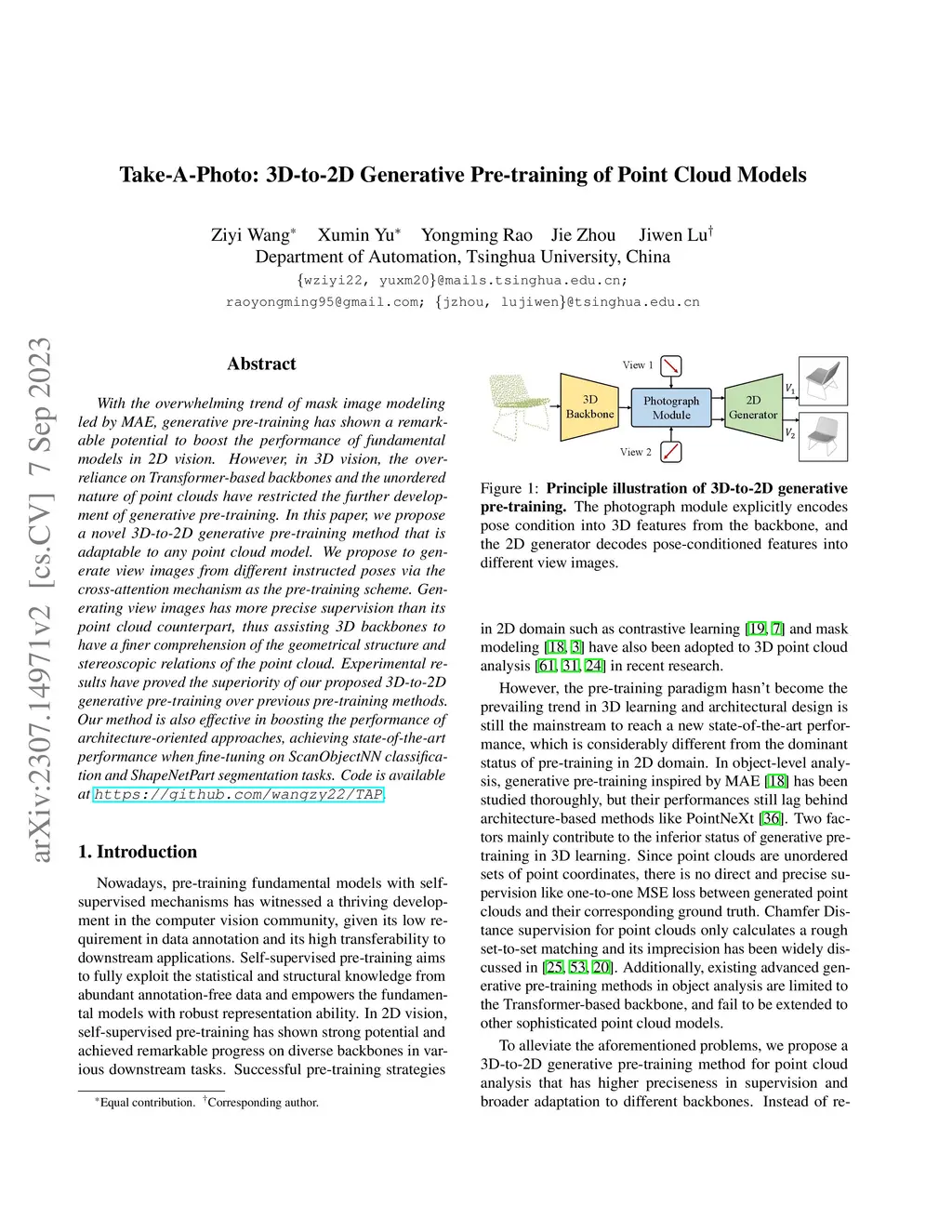 Take-A-Photo: 3D-to-2D Generative Pre-training of Point Cloud Models