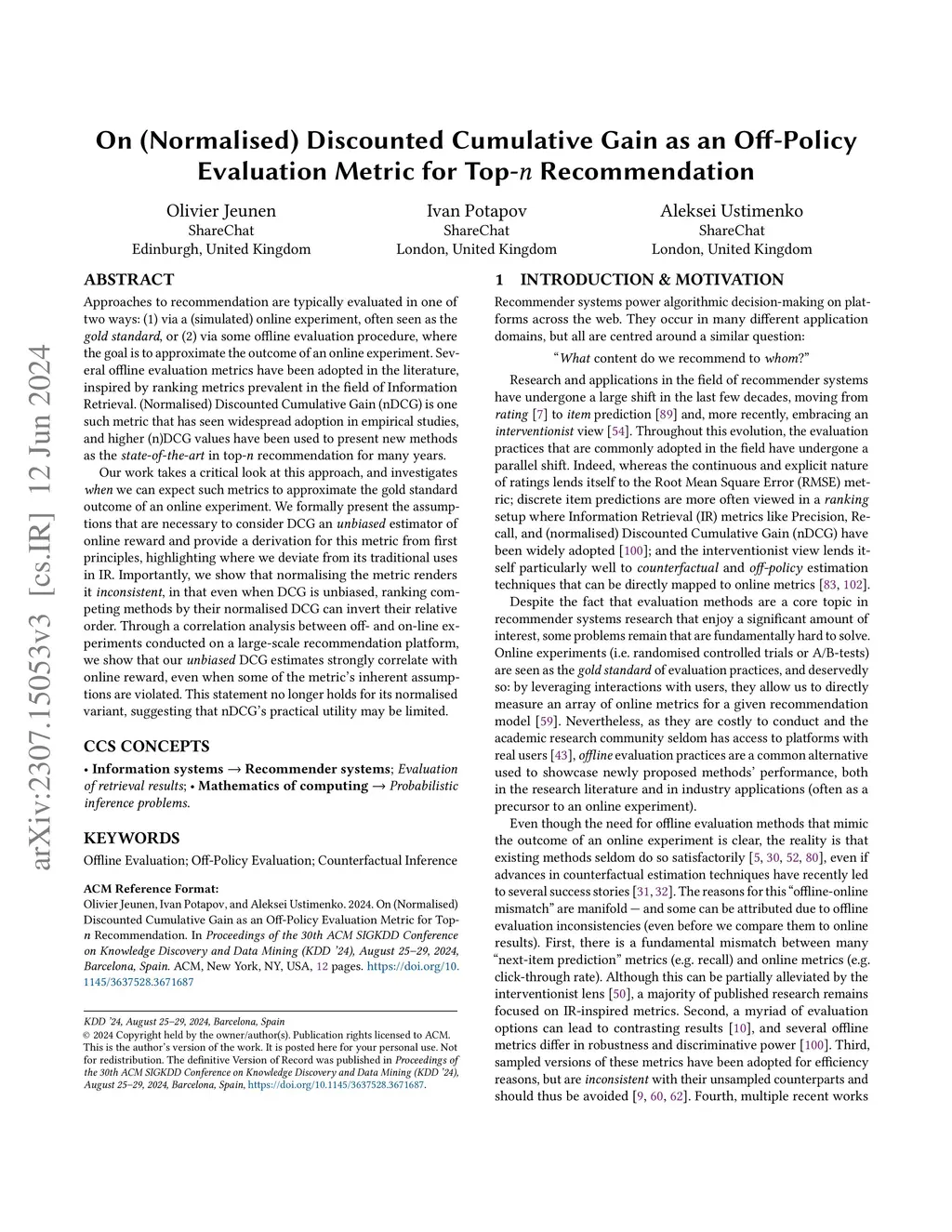 On (Normalised) Discounted Cumulative Gain as an Off-Policy Evaluation