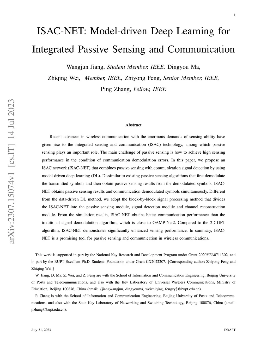 Recent advances in wireless communication with the enormous demands of sensing ability have given rise to the integrated sensing and communication (ISAC) technology, among which passive sensing plays an important role. The main challenge of passive sensing is how to achieve high sensing performance in the condition of communication demodulation errors. In this paper, we propose an ISAC network (ISAC-NET) that combines passive sensing with communication signal detection by using model-driven deep learning (DL). Dissimilar to existing passive sensing algorithms that first demodulate the transmitted symbols and then obtain passive sensing results from the demodulated symbols, ISAC-NET obtains passive sensing results and communication demodulated symbols simultaneously. Different from the data-driven DL method, we adopt the block-by-block signal processing method that divides the ISAC-NET into the passive sensing module, signal detection module and channel reconstruction module. From the simulation results, ISAC-NET obtains better communication performance than the traditional signal demodulation algorithm, which is close to OAMP-Net2. Compared to the 2D-DFT algorithm, ISAC-NET demonstrates significantly enhanced sensing performance. In summary, ISAC-NET is a promising tool for passive sensing and communication in wireless communications.