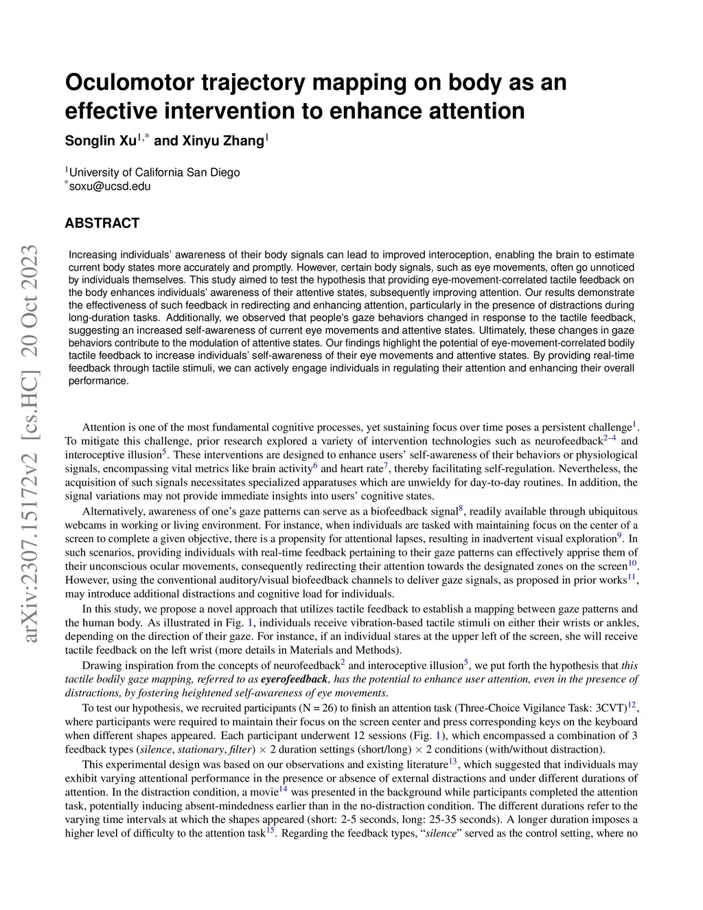 Oculomotor trajectory mapping on body as an effective intervention to