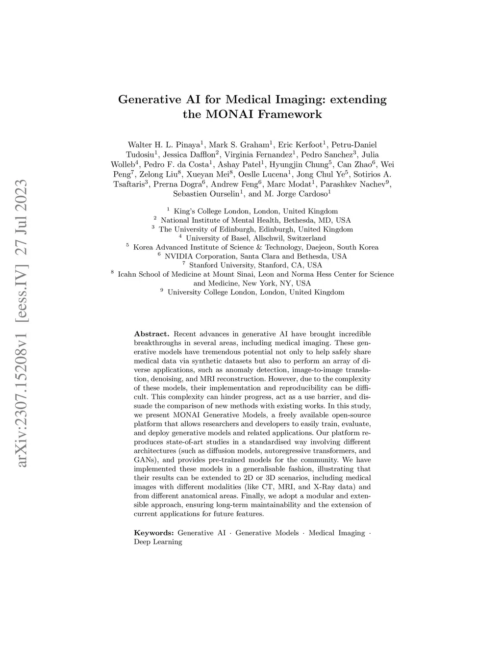 Generative AI for Medical Imaging: extending the MONAI Framework