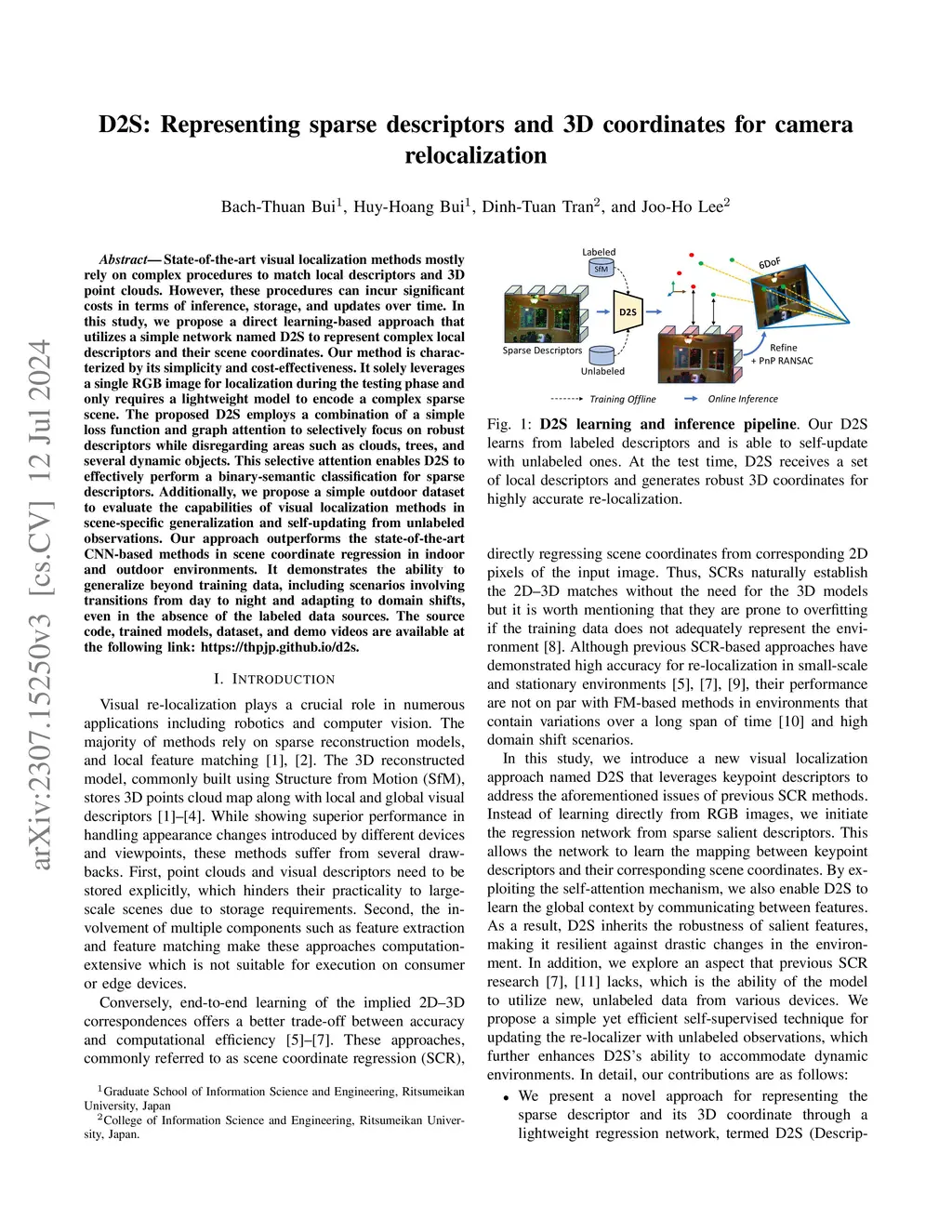 D2S: Representing sparse descriptors and 3D coordinates for camera