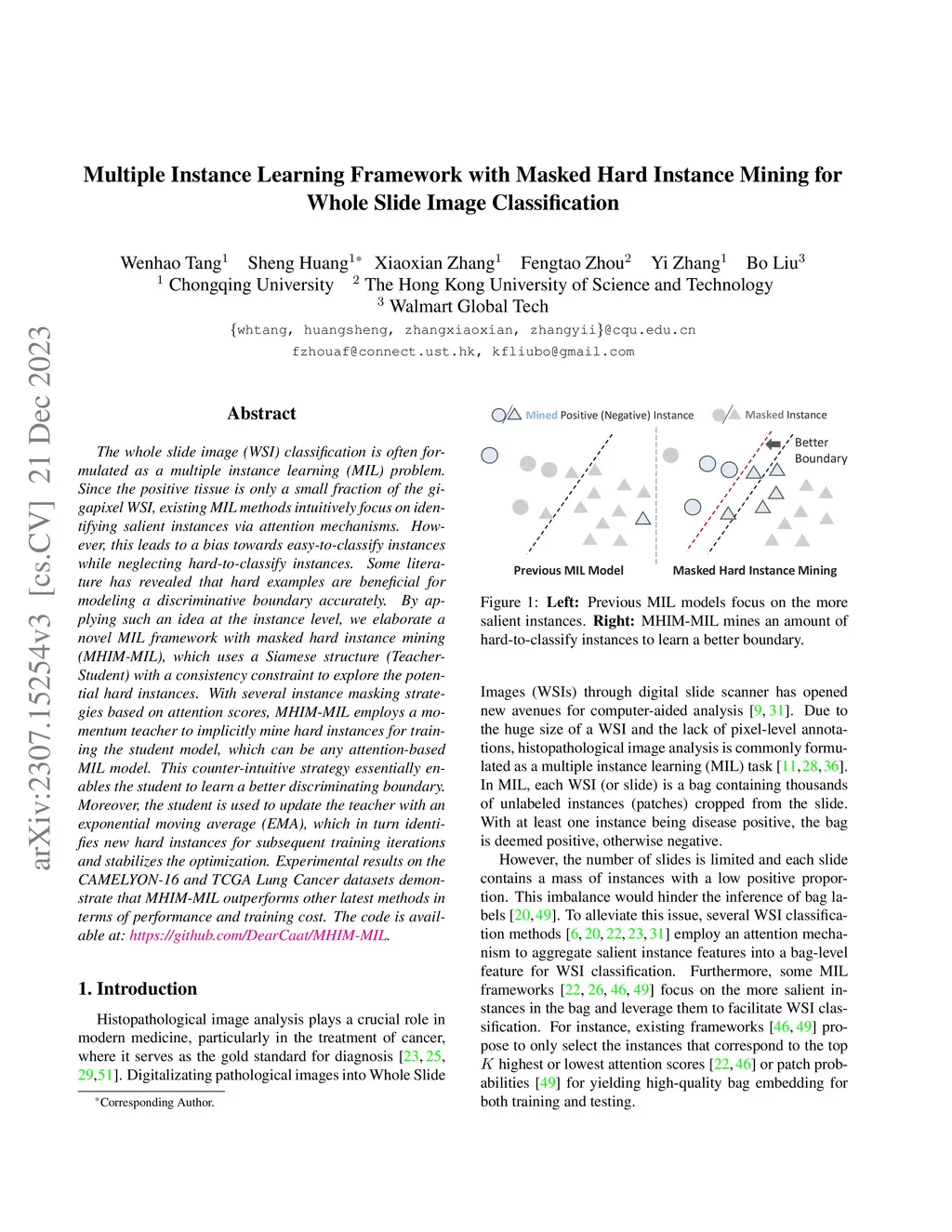 Multiple Instance Learning Framework with Masked Hard Instance Mining