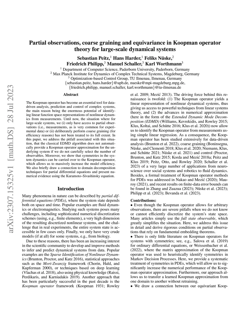 Partial observations, coarse graining and equivariance in Koopman