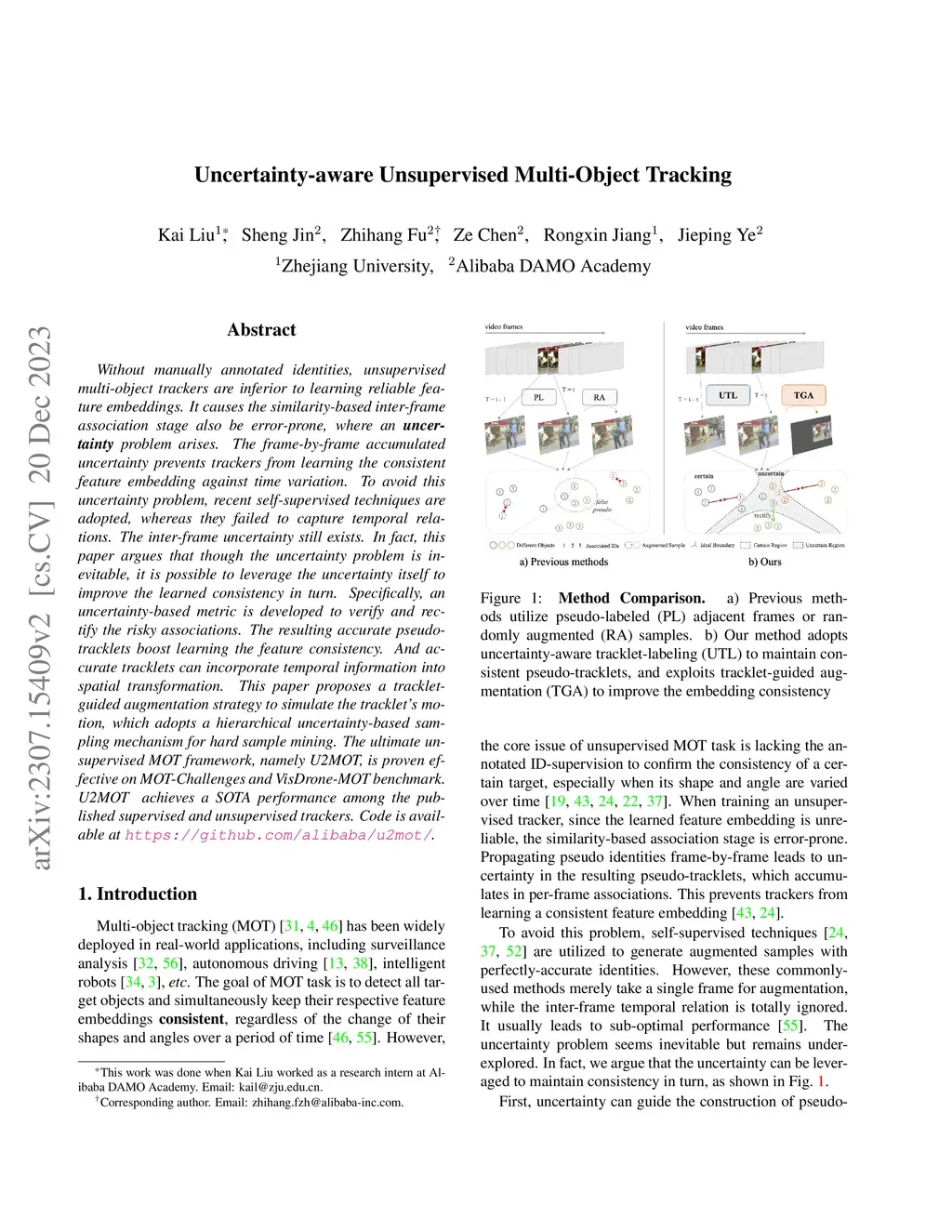 Without manually annotated identities, unsupervised multi-object trackers are inferior to learning reliable feature embeddings. It causes the similarity-based inter-frame association stage also be error-prone, where an uncertainty problem arises. The frame-by-frame accumulated uncertainty prevents trackers from learning the consistent feature embedding against time variation. To avoid this uncertainty problem, recent self-supervised techniques are adopted, whereas they failed to capture temporal relations. The interframe uncertainty still exists. In fact, this paper argues that though the uncertainty problem is inevitable, it is possible to leverage the uncertainty itself to improve the learned consistency in turn. Specifically, an uncertainty-based metric is developed to verify and rectify the risky associations. The resulting accurate pseudo-tracklets boost learning the feature consistency. And accurate tracklets can incorporate temporal information into spatial transformation. This paper proposes a tracklet-guided augmentation strategy to simulate tracklets' motion, which adopts a hierarchical uncertainty-based sampling mechanism for hard sample mining. The ultimate unsupervised MOT framework, namely U2MOT, is proven effective on MOT-Challenges and VisDrone-MOT benchmark. U2MOT achieves a SOTA performance among the published supervised and unsupervised trackers.