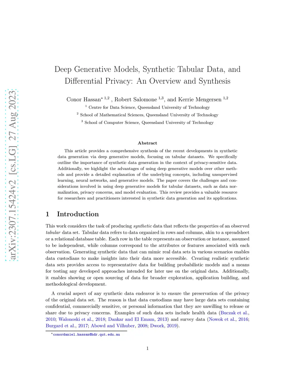 Deep Generative Models, Synthetic Tabular Data, and Differential