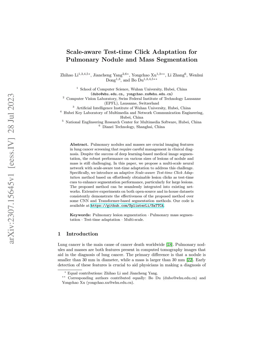 Scale-aware Test-time Click Adaptation for Pulmonary Nodule and Mass