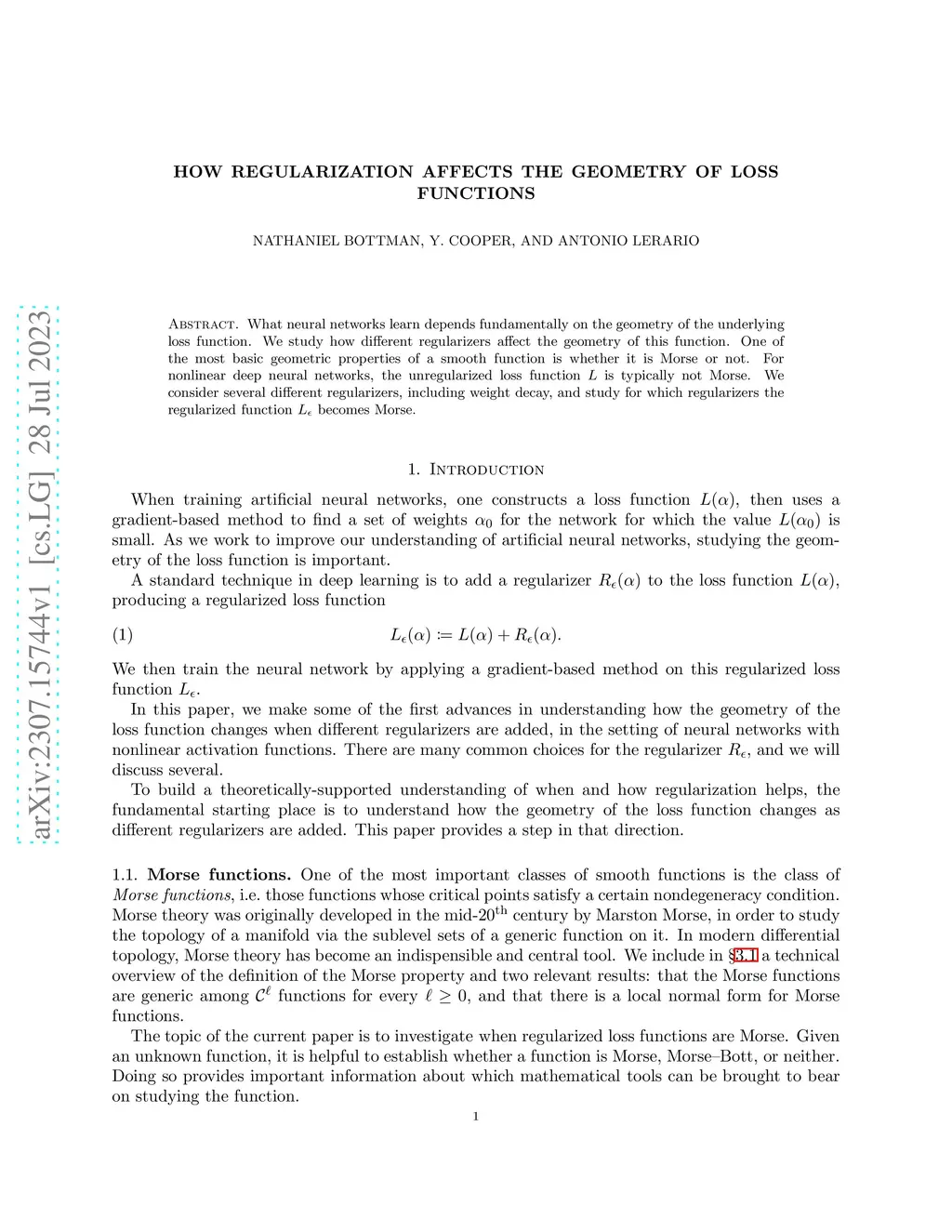 What neural networks learn depends fundamentally on the geometry of the underlying loss function. We study how different regularizers affect the geometry of this function. One of the most basic geometric properties of a smooth function is whether it is Morse or not. For nonlinear deep neural networks, the unregularized loss function is typically not Morse. We consider several different regularizers, including weight decay, and study for which regularizers the regularized function becomes Morse.