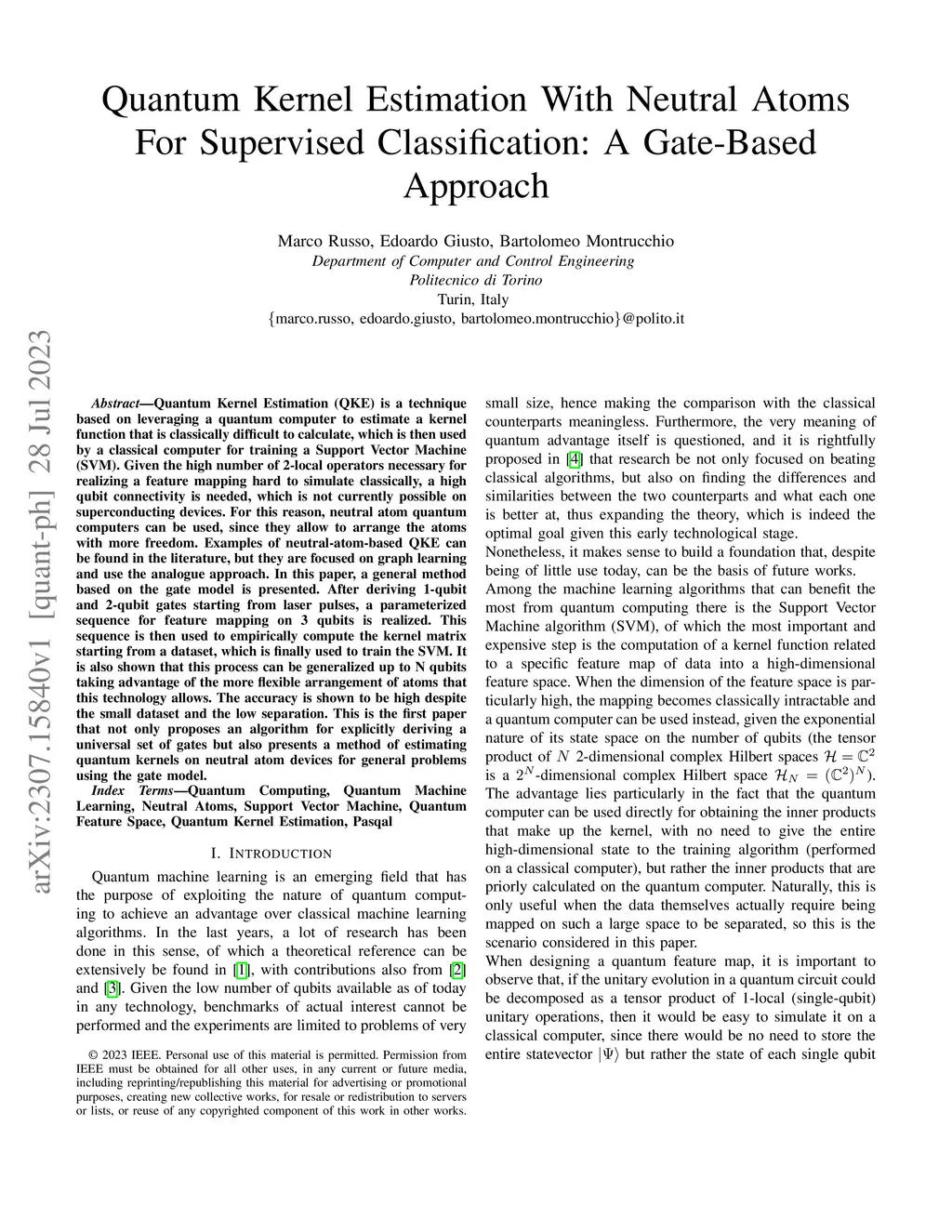 Quantum Kernel Estimation With Neutral Atoms For Supervised