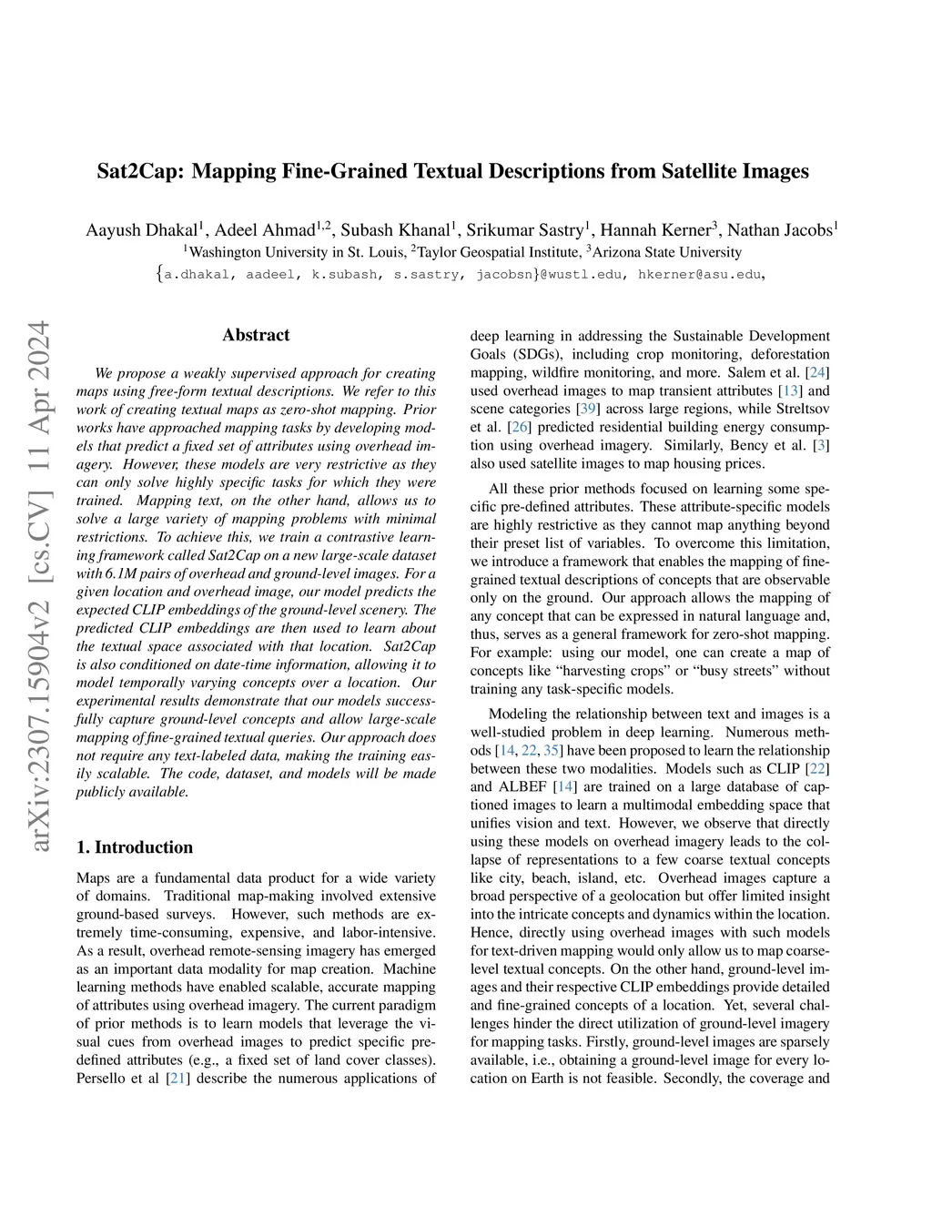Sat2Cap: Mapping Fine-Grained Textual Descriptions from Satellite Images
