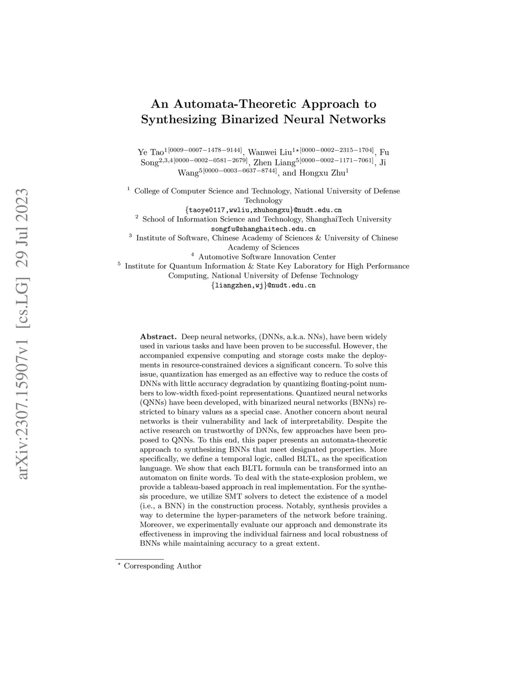 An Automata-Theoretic Approach to Synthesizing Binarized Neural Networks