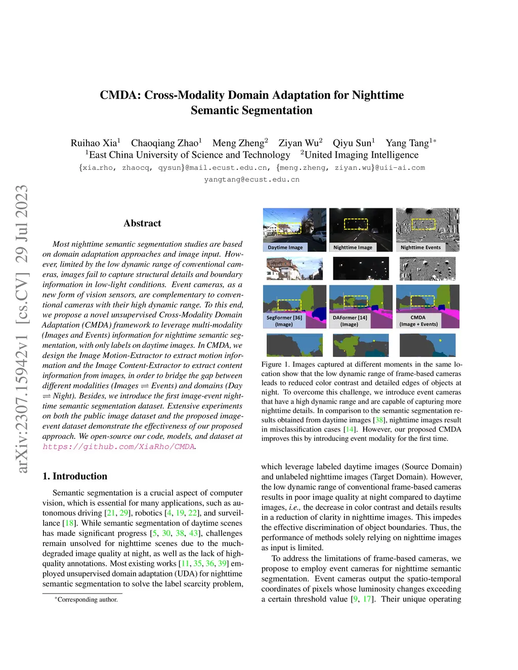 CMDA: Cross-Modality Domain Adaptation for Nighttime Semantic