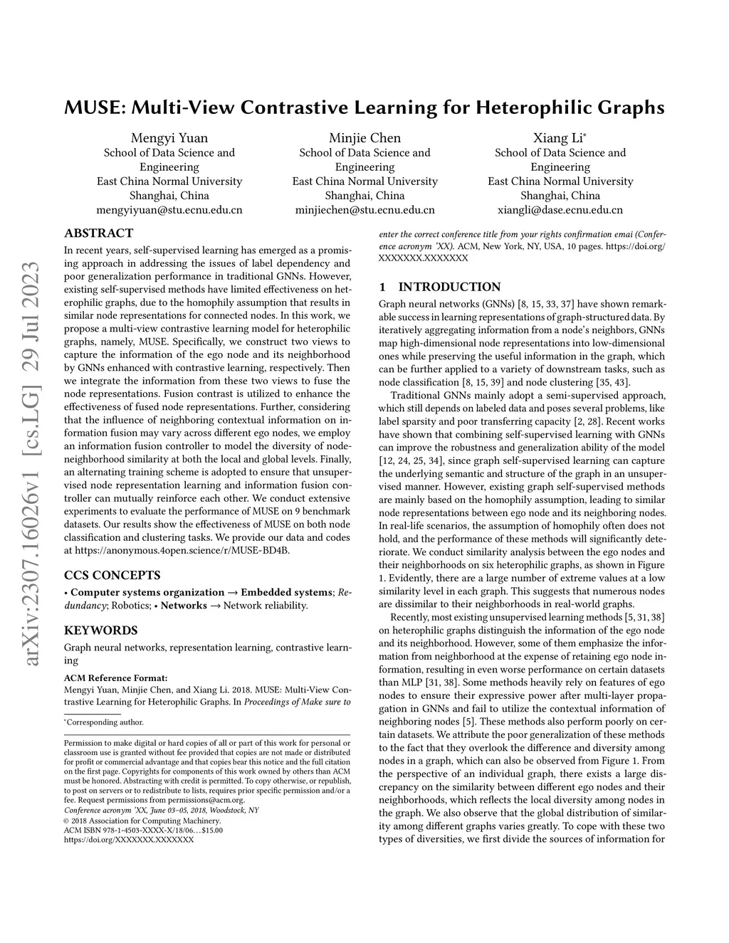 MUSE: Multi-View Contrastive Learning for Heterophilic Graphs