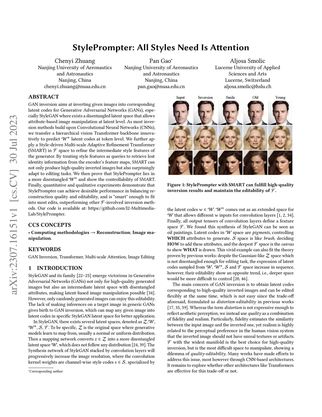 GAN inversion aims at inverting given images into corresponding latent codes for Generative Adversarial Networks (GANs), especially StyleGAN where exists a disentangled latent space that allows attribute-based image manipulation at latent level. As most inversion methods build upon Convolutional Neural Networks (CNNs), we transfer a hierarchical vision Transformer backbone innovatively to predict latent codes at token level. We further apply a Style-driven Multi-scale Adaptive Refinement Transformer (SMART) in space to refine the intermediate style features of the generator. By treating style features as queries to retrieve lost identity information from the encoder's feature maps, SMART can not only produce high-quality inverted images but also surprisingly adapt to editing tasks. We then prove that StylePrompter lies in a more disentangled and show the controllability of SMART. Finally, quantitative and qualitative experiments demonstrate that StylePrompter can achieve desirable performance in balancing reconstruction quality and editability, and is "smart" enough to fit into most edits, outperforming other -involved inversion methods.